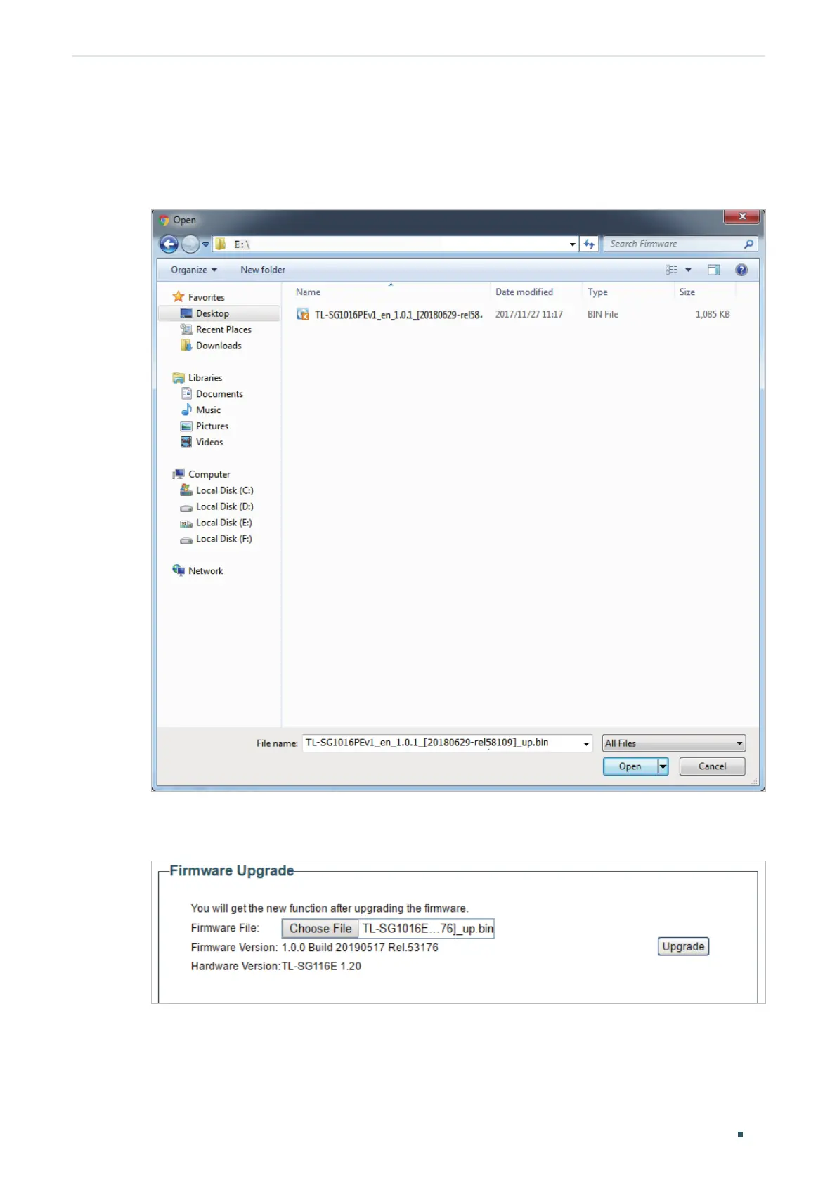 1) Click Choose File to load the following page. Specify the firmware file path and select