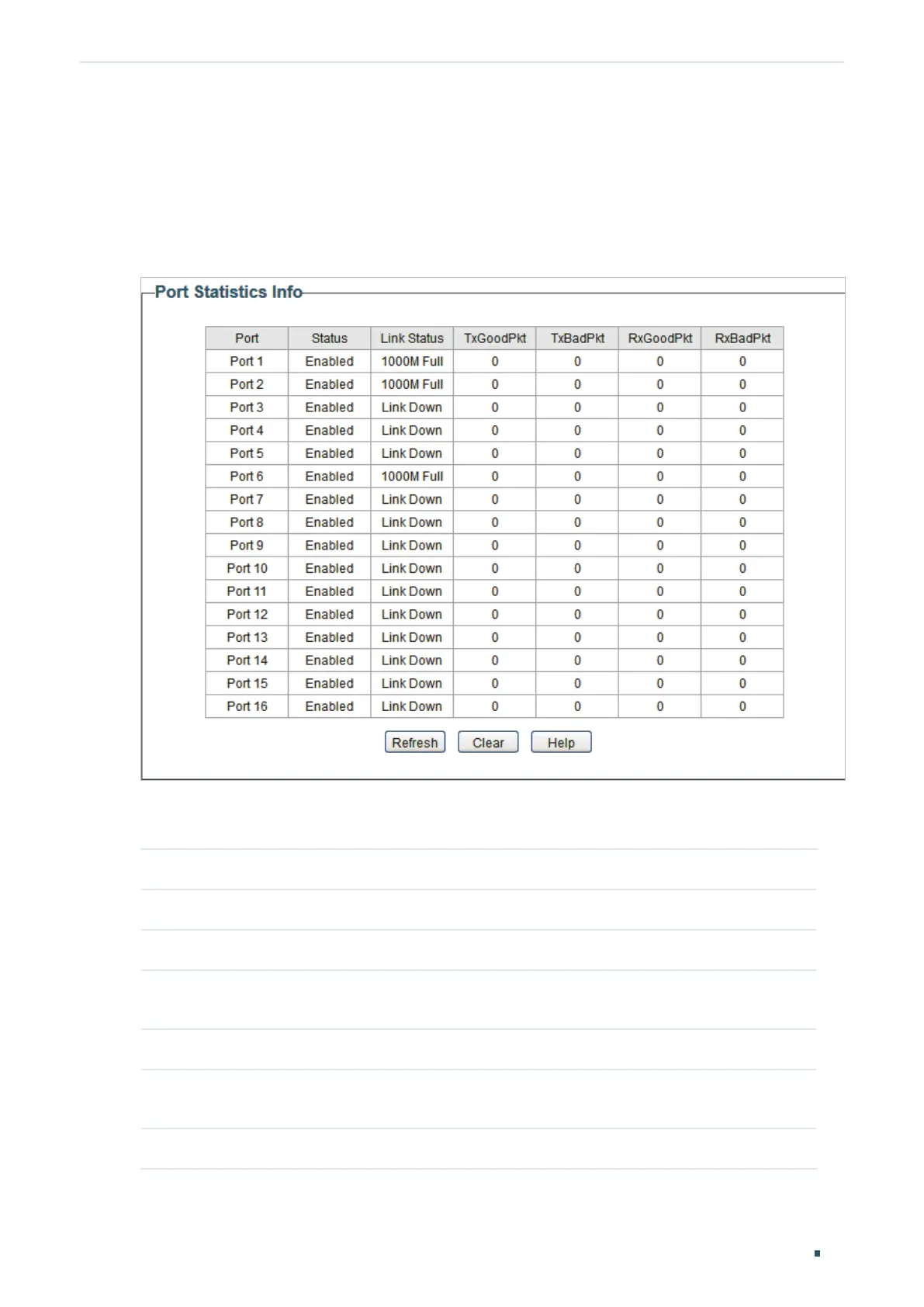 You can view the statistics of each port. You can click Clear to clear the data, also you can