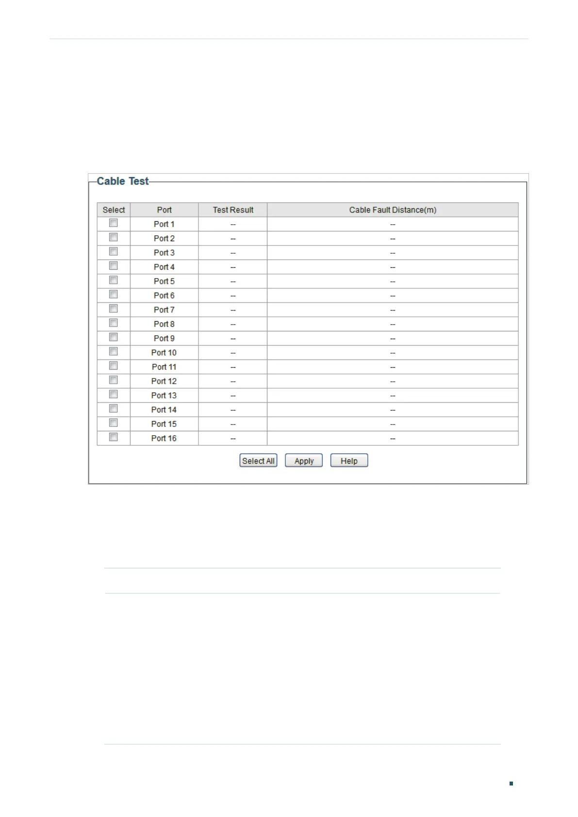 1) Select your desired ports for test. Click Apply to test cables connected to the selected