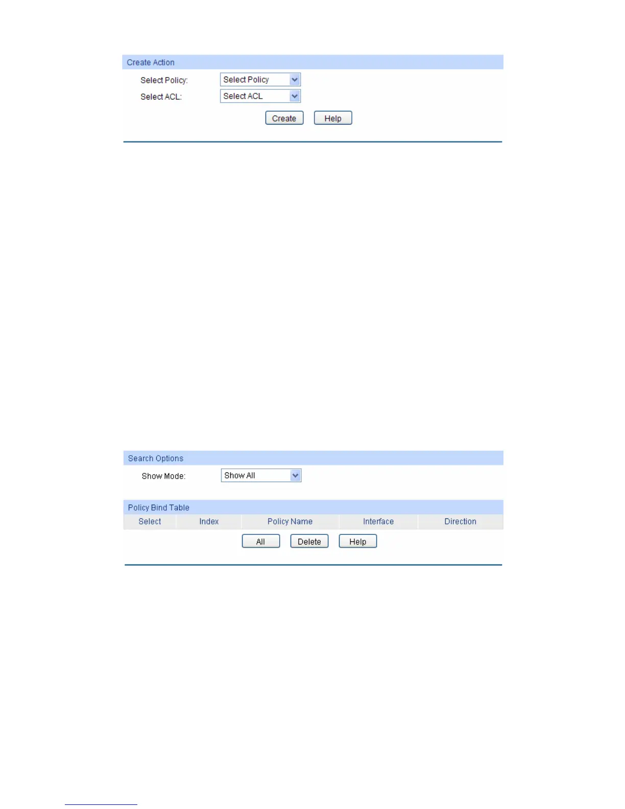 Choose the menu ACL→Policy Binding→Binding Table to load the following page.