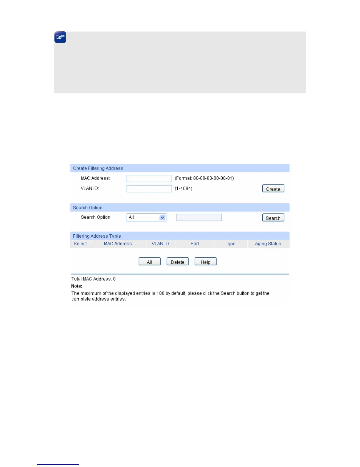 destination address, so as to guarantee the network security. The filtering MAC address entries