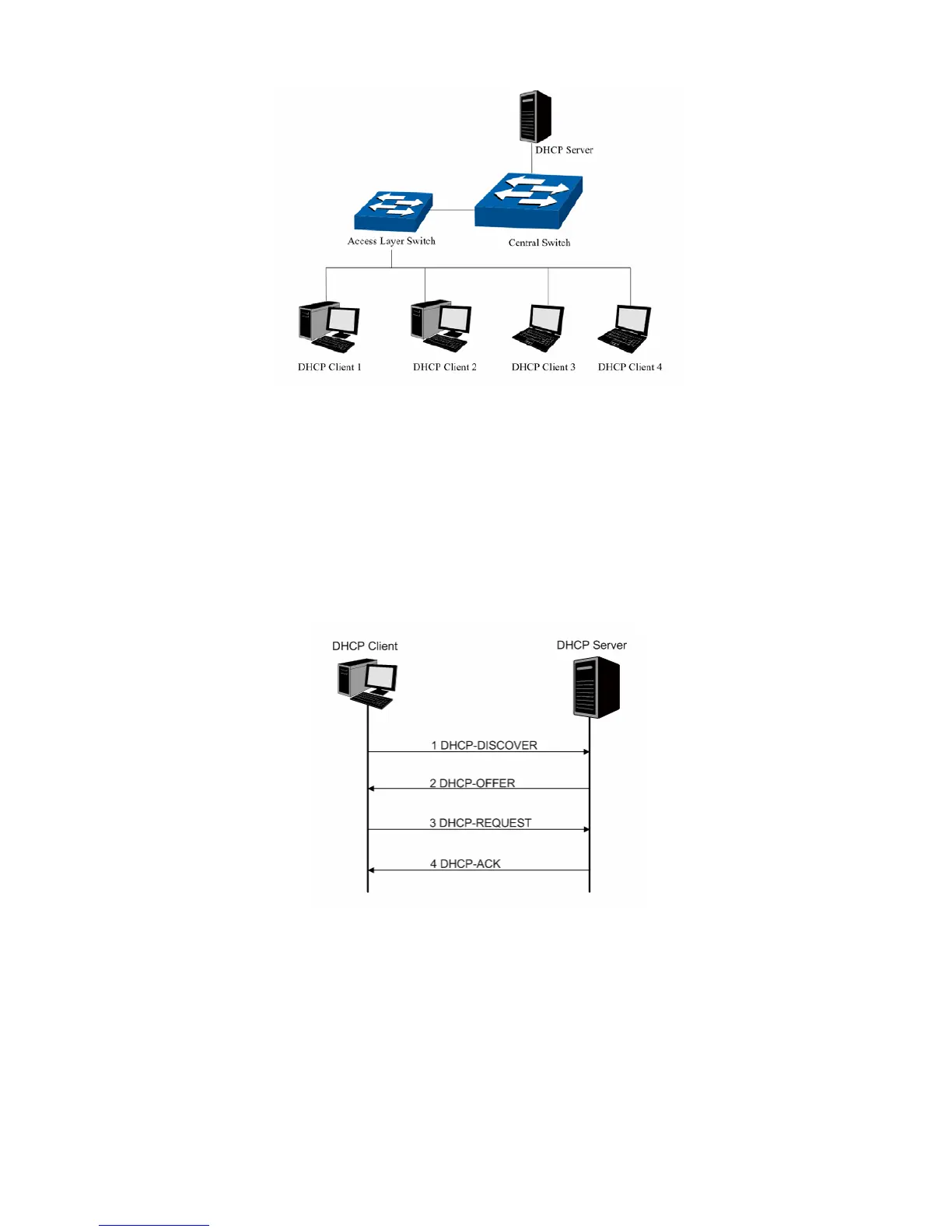 (1) DHCP-DISCOVER Stage: The Client broadcasts the DHCP-DISCOVER packet to find