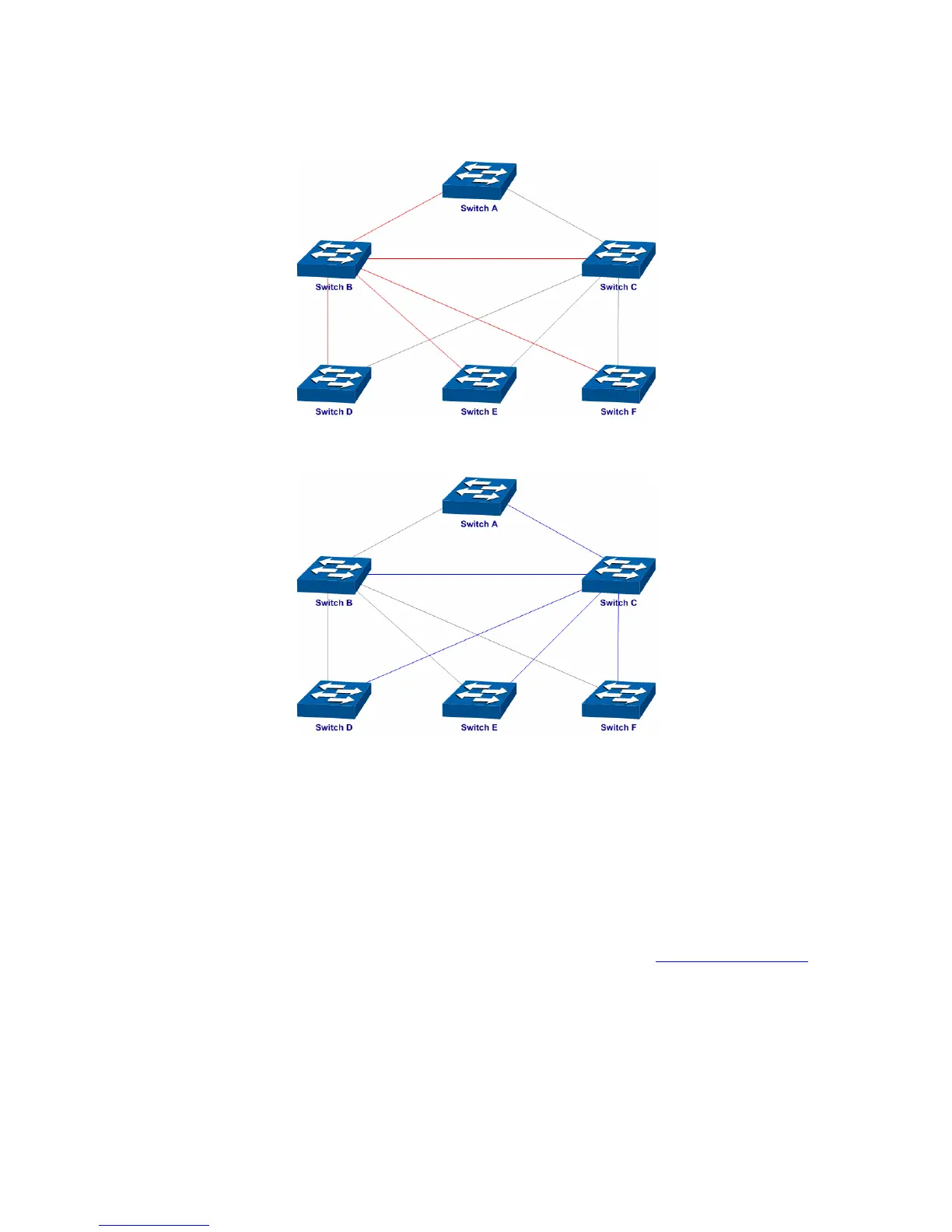 z For Instance 2 (VLAN102, 104 and 106), the blue paths in the following figure are connected