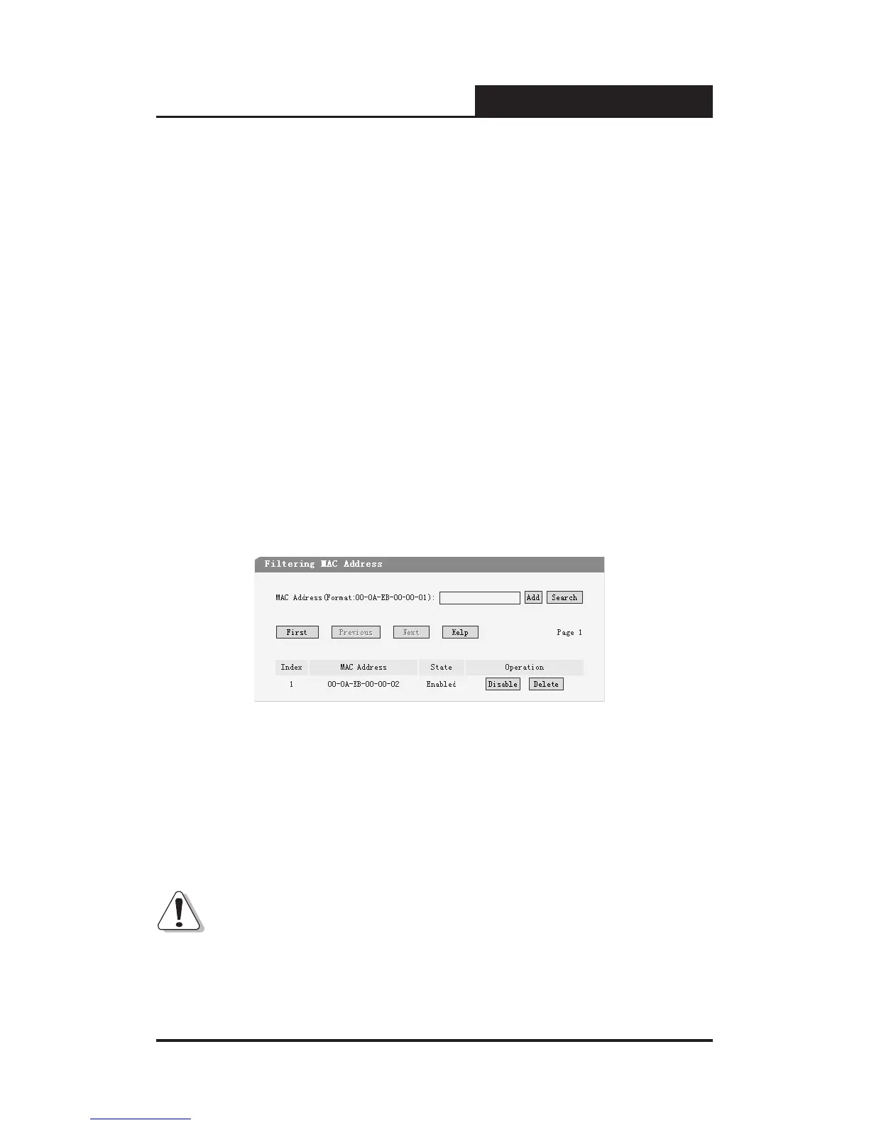 MAC Address: Indicates the ltering MAC address to be congured or to