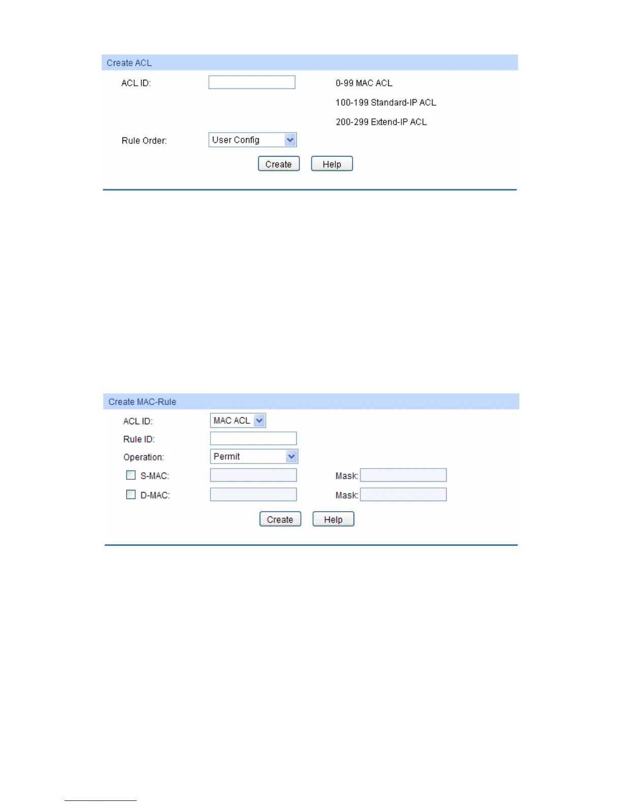 Choose the menu ACL→ACL Config→MAC ACL to load the following page.