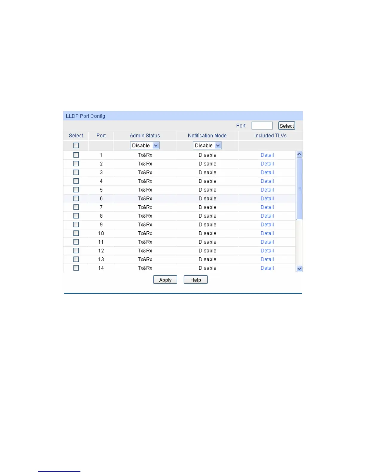 Choose the menu LLDP→Basic Config→Port Config to load the following page.