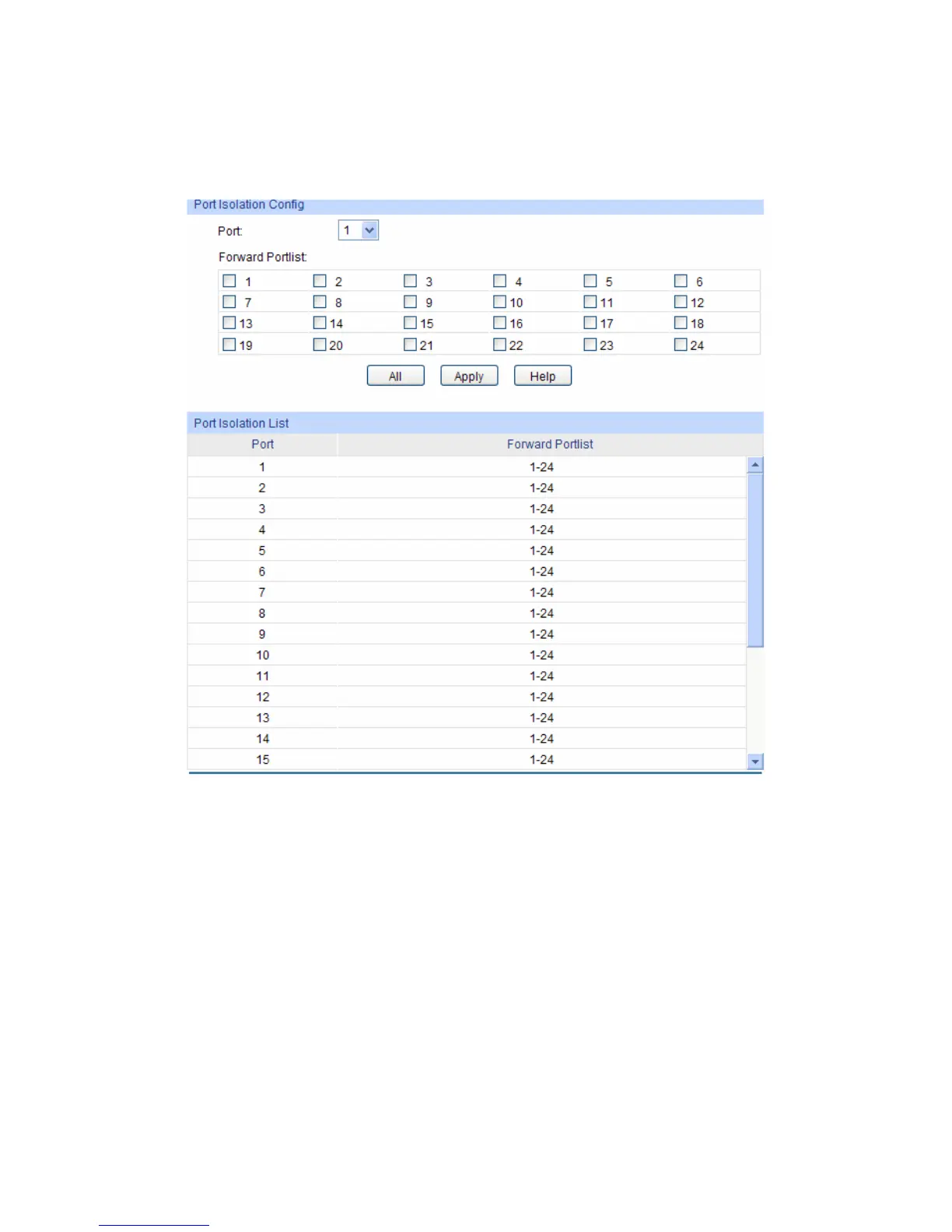 Choose the menu Switching→Port→Port Isolation to load the following page.