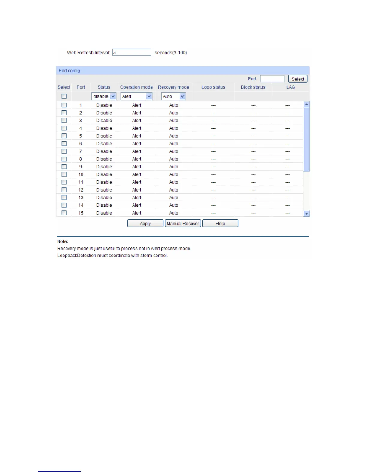 Recovery Mode: Select the mode how the blocked port recovers to normal status.