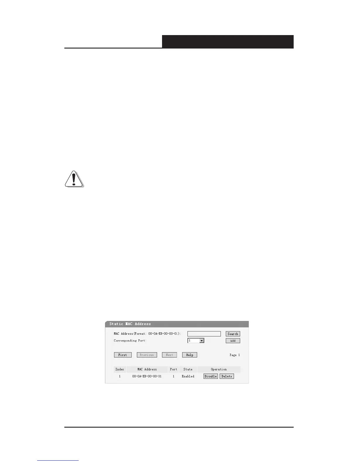 This page provides the function of adding, searching a static MAC address
