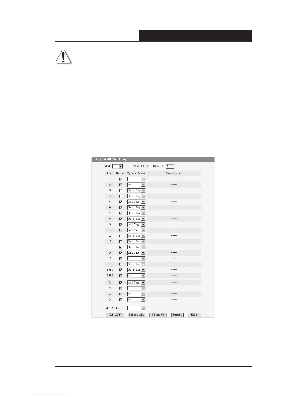 This page displays when the switch is in Tag VLAN mode, it congures each