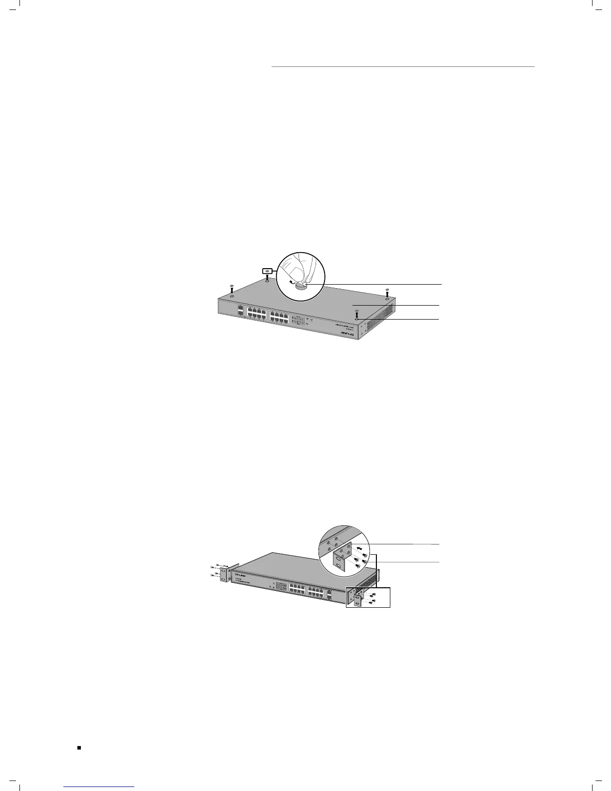 Turnover the device and attach the supplied rubber feet to the recessed areas on 3.