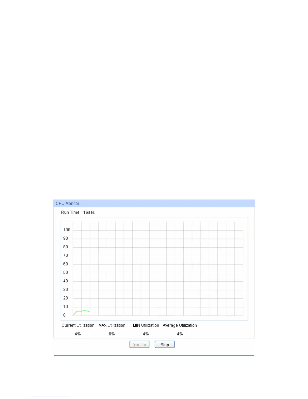 Choose the menu Maintenance→System Monitor→CPU Monitor to load the following page.