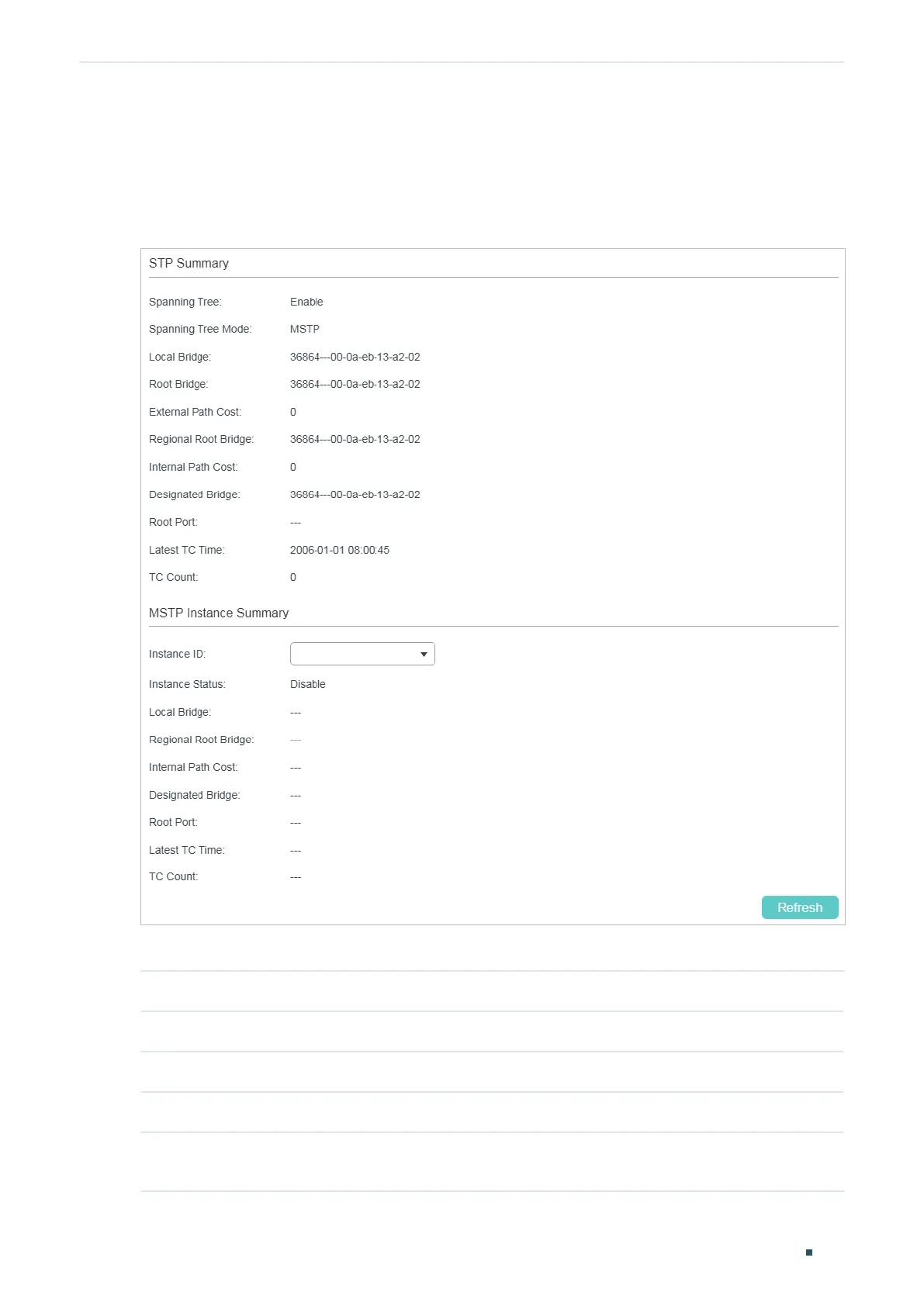 Choose the menu Spanning Tree > STP Config > STP Summary to load the following