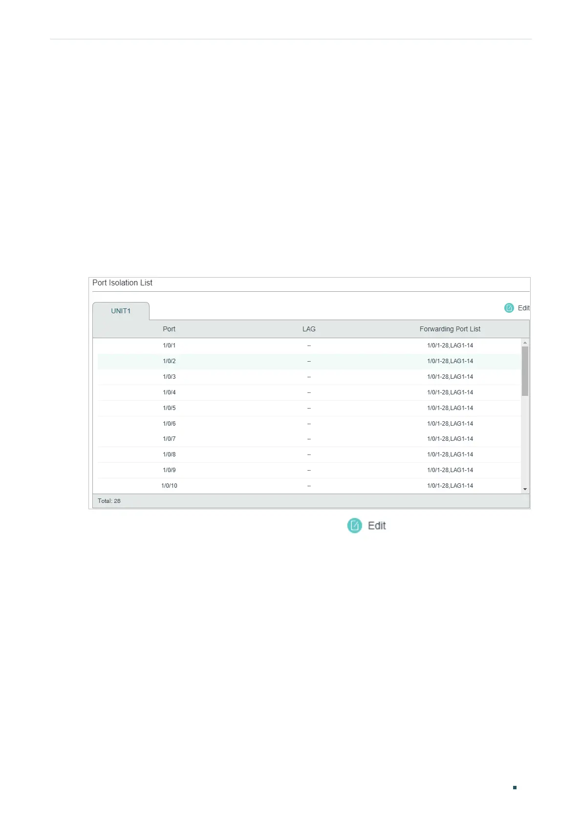 The above page displays the port isolation list. Click to configure Port Isolation on
