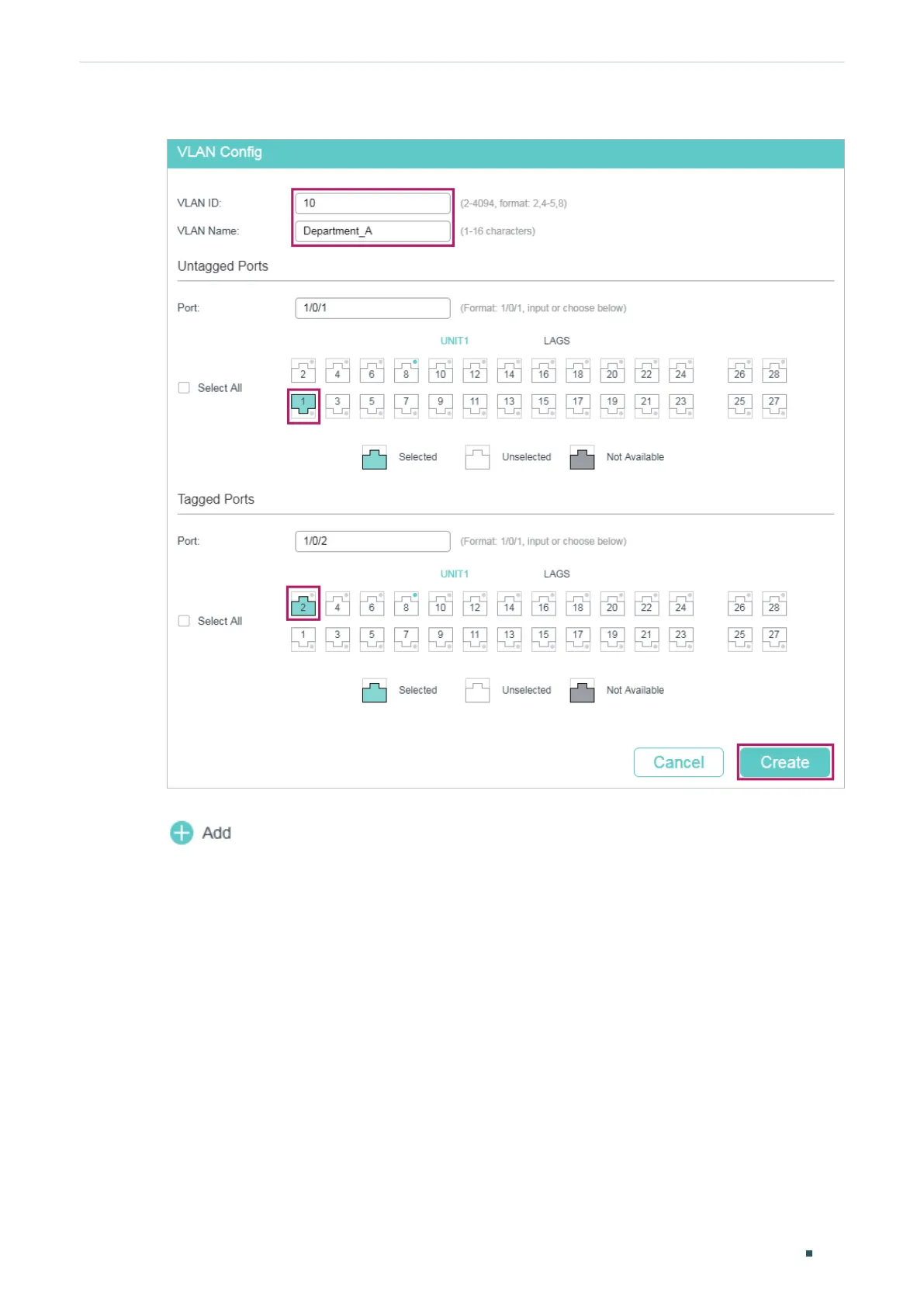 Figure 3-2 Creating VLAN 10