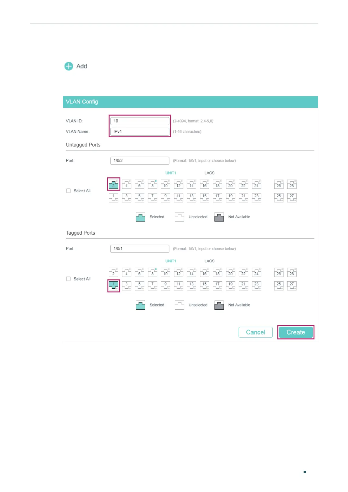 untagged port 1/0/2 to VLAN 10. Click Create.