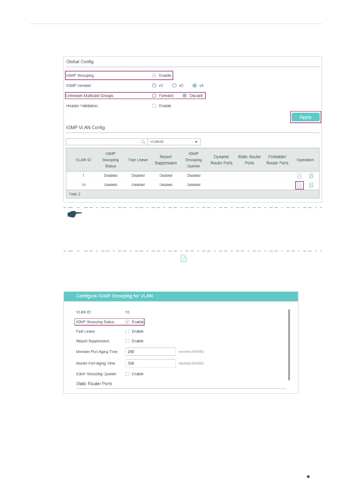 Figure 7-16 Enable IGMP Snooping for VLAN 10