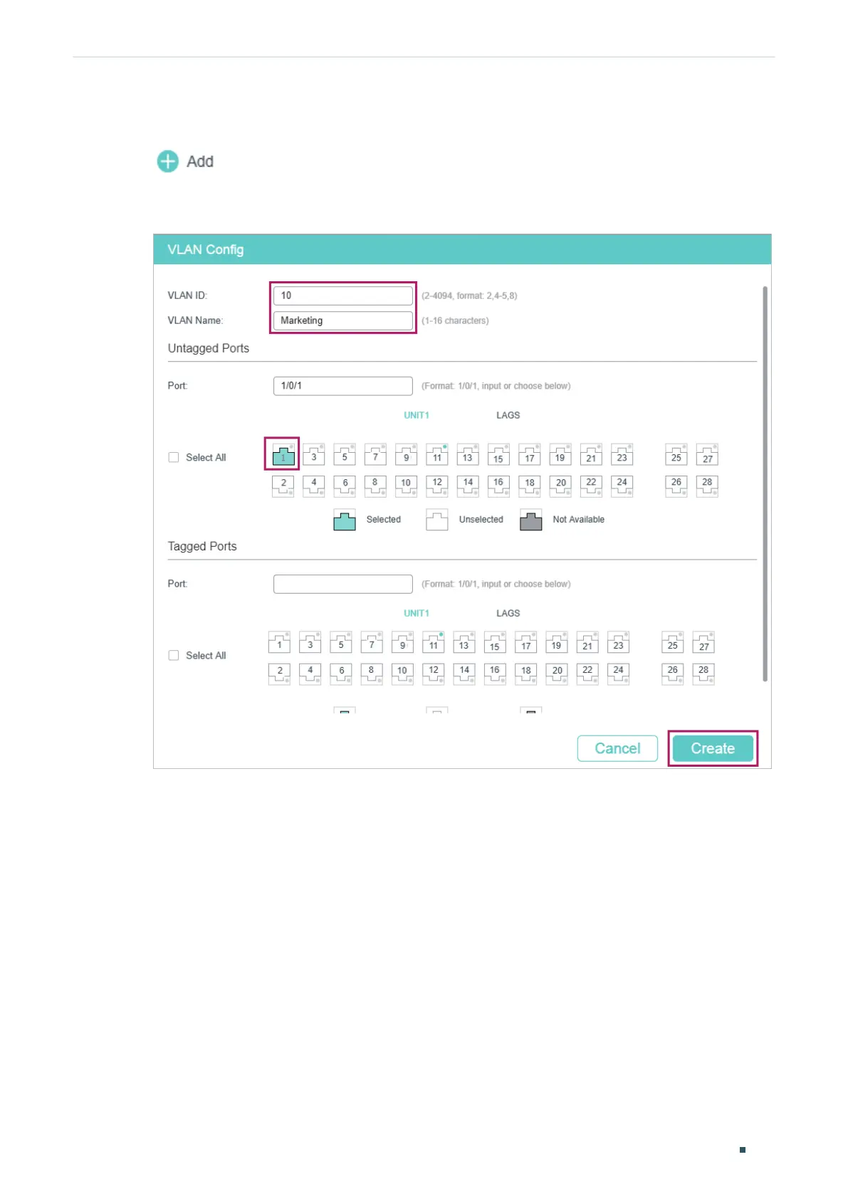 Figure 5-22 Creating VLAN 10