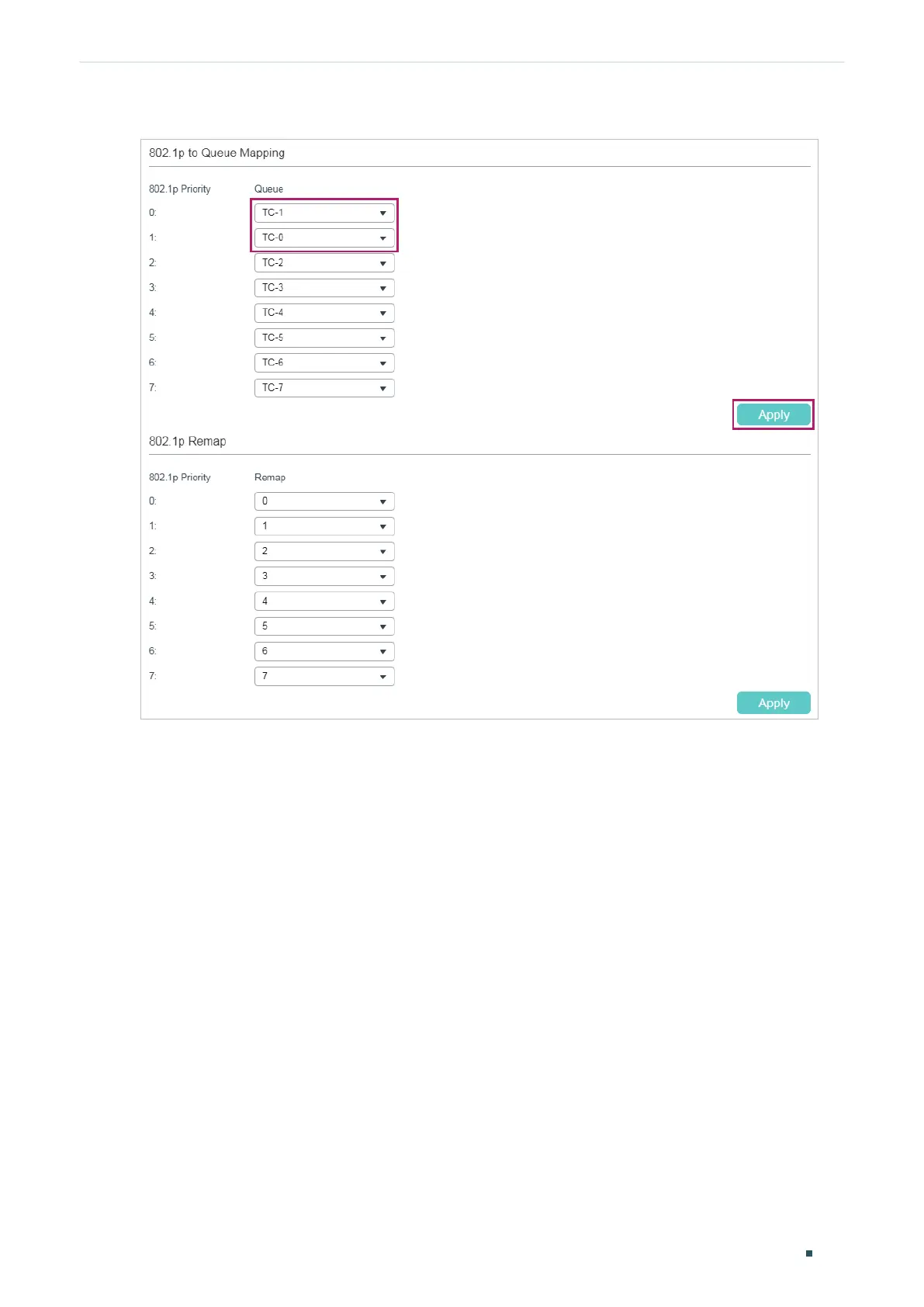 Figure 6-3 Configuring the 802.1p to Queue Mappings