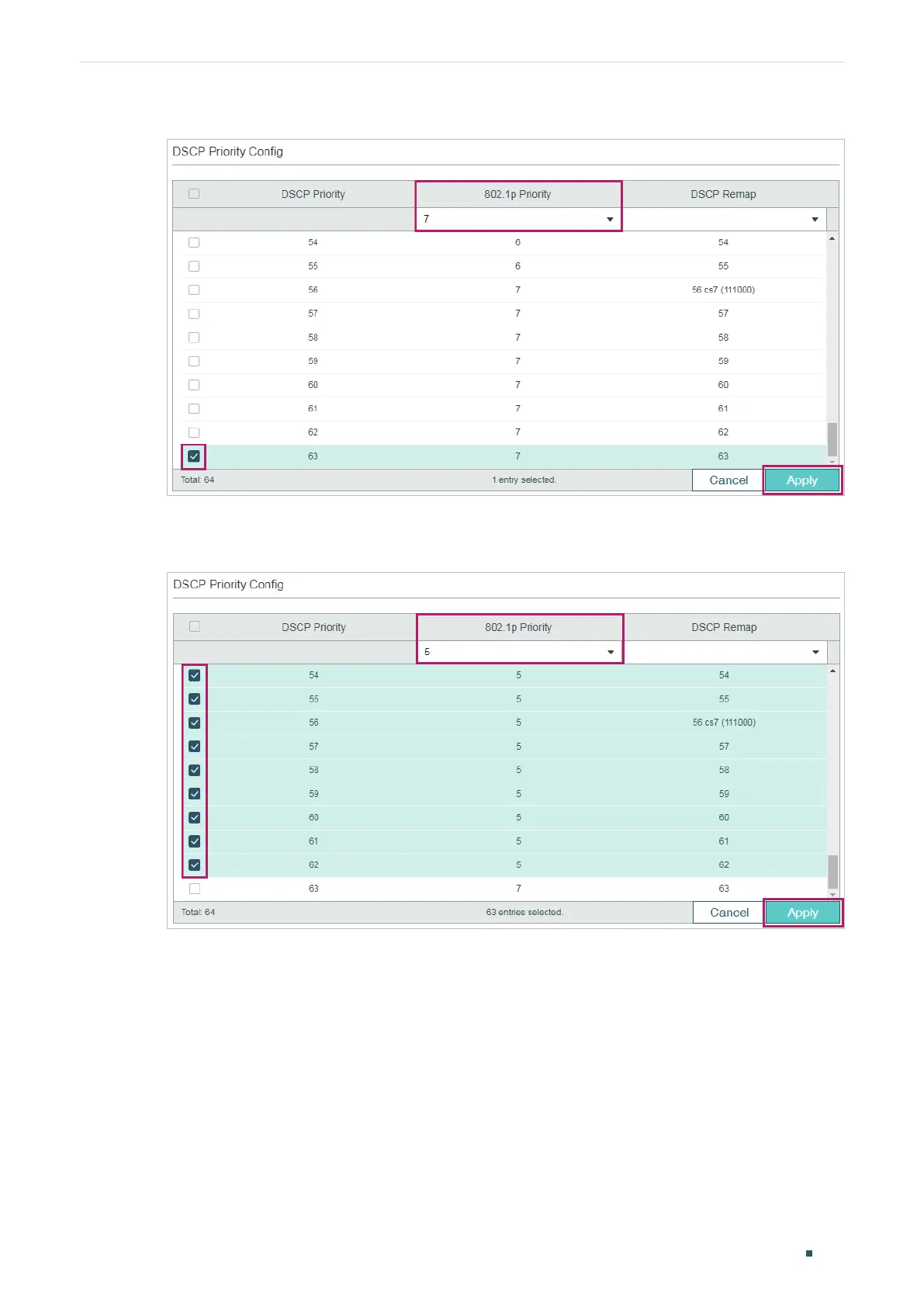4) Specify the 802.1p priority as 5 for other DSCP priorities. Click Apply.