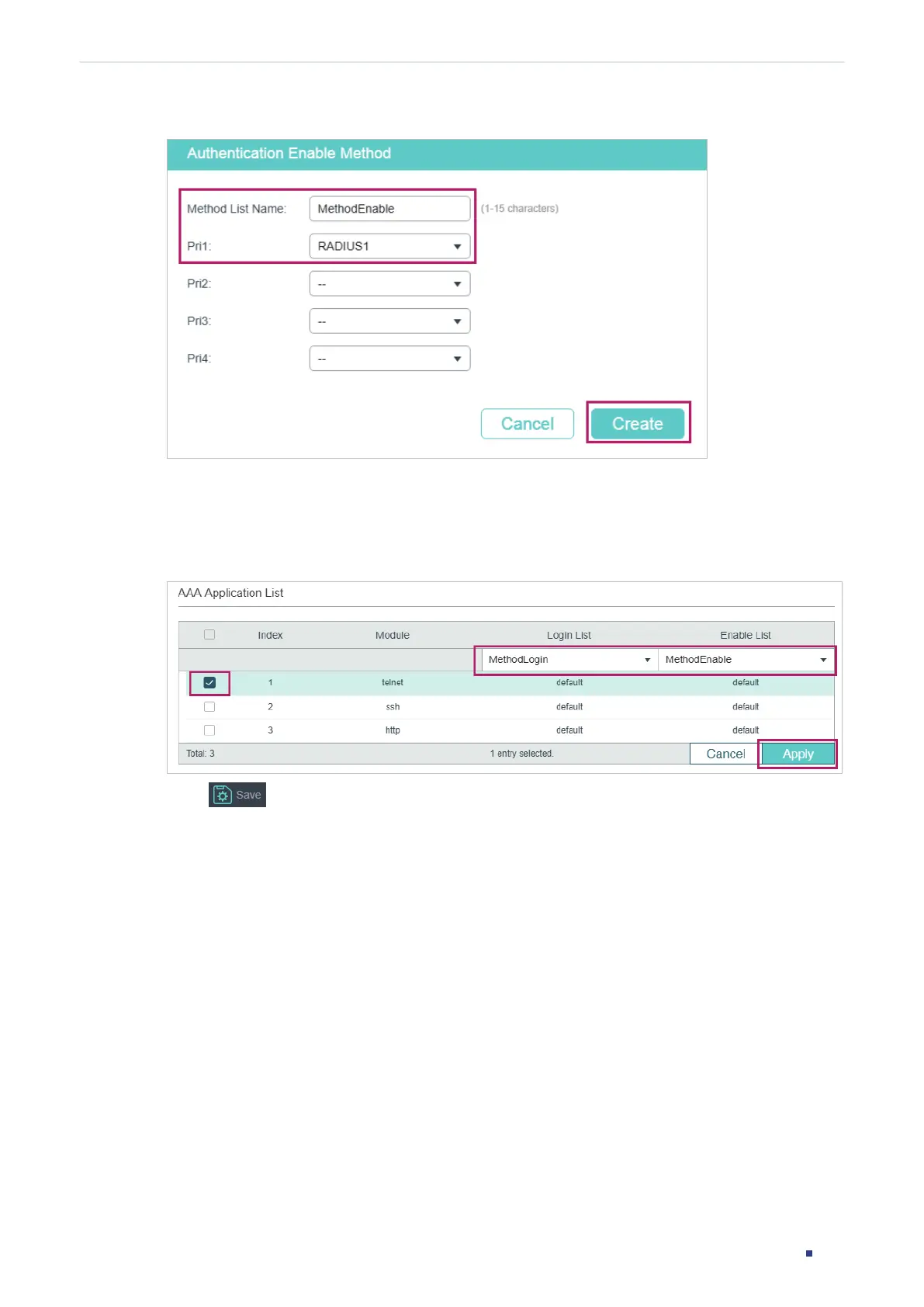 1) Add RADIUS Server 1 and RADIUS Server 2 on the switch.