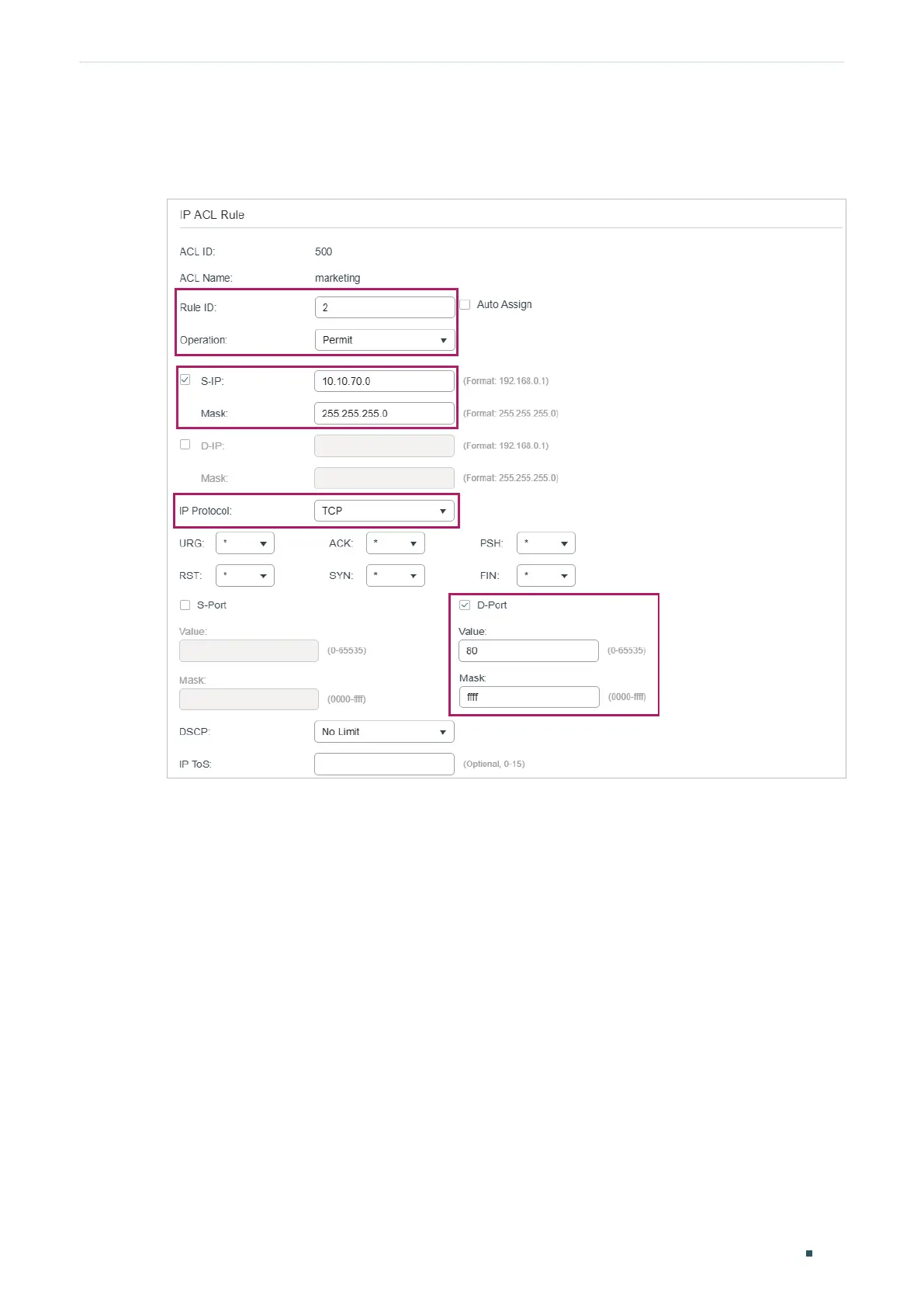 5) In the same way, configure rule 2 and rule 3 to permit packets with source IP 10.10.70.0