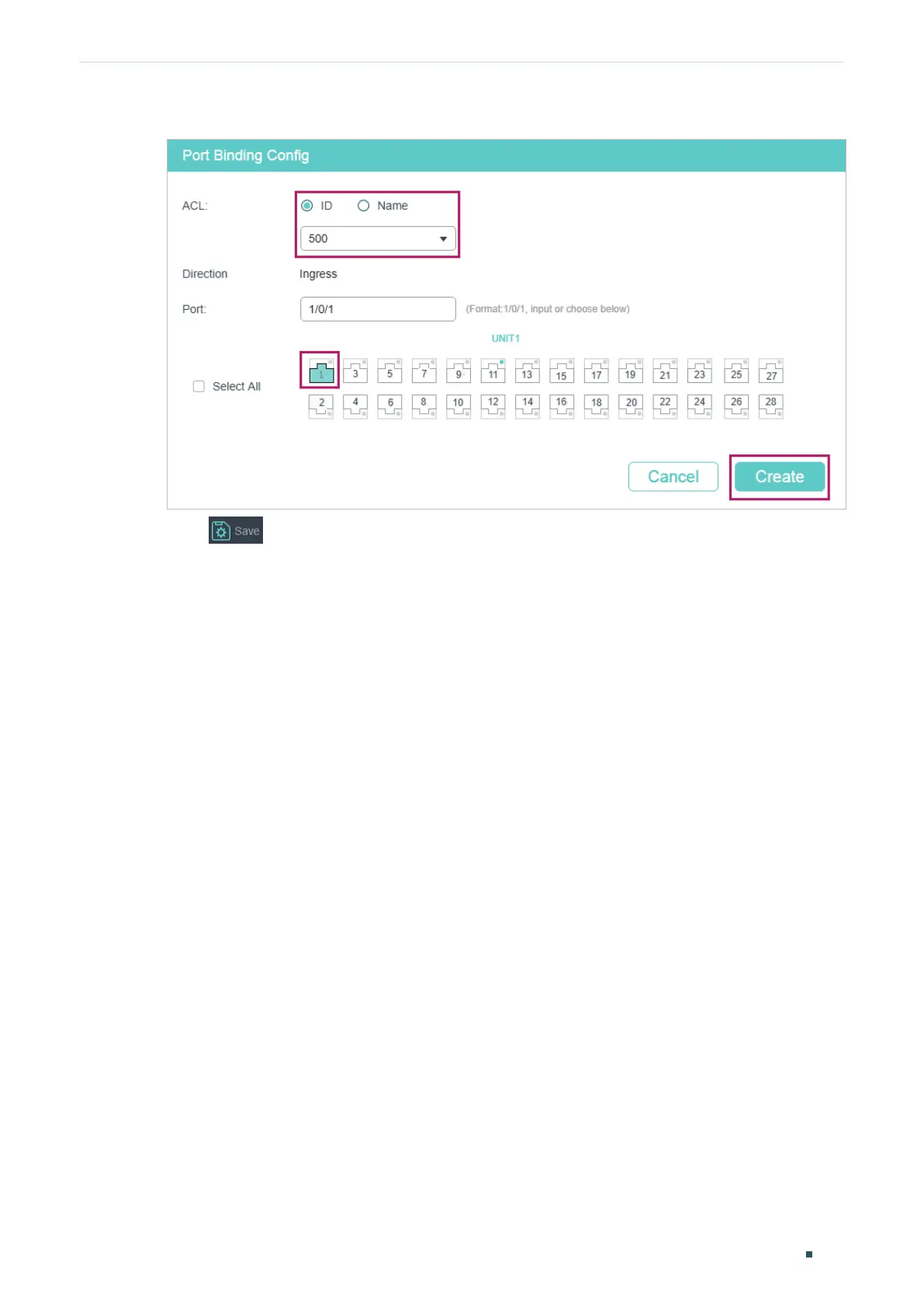 Figure 3-22 Binding the ACL to Port 1/0/1