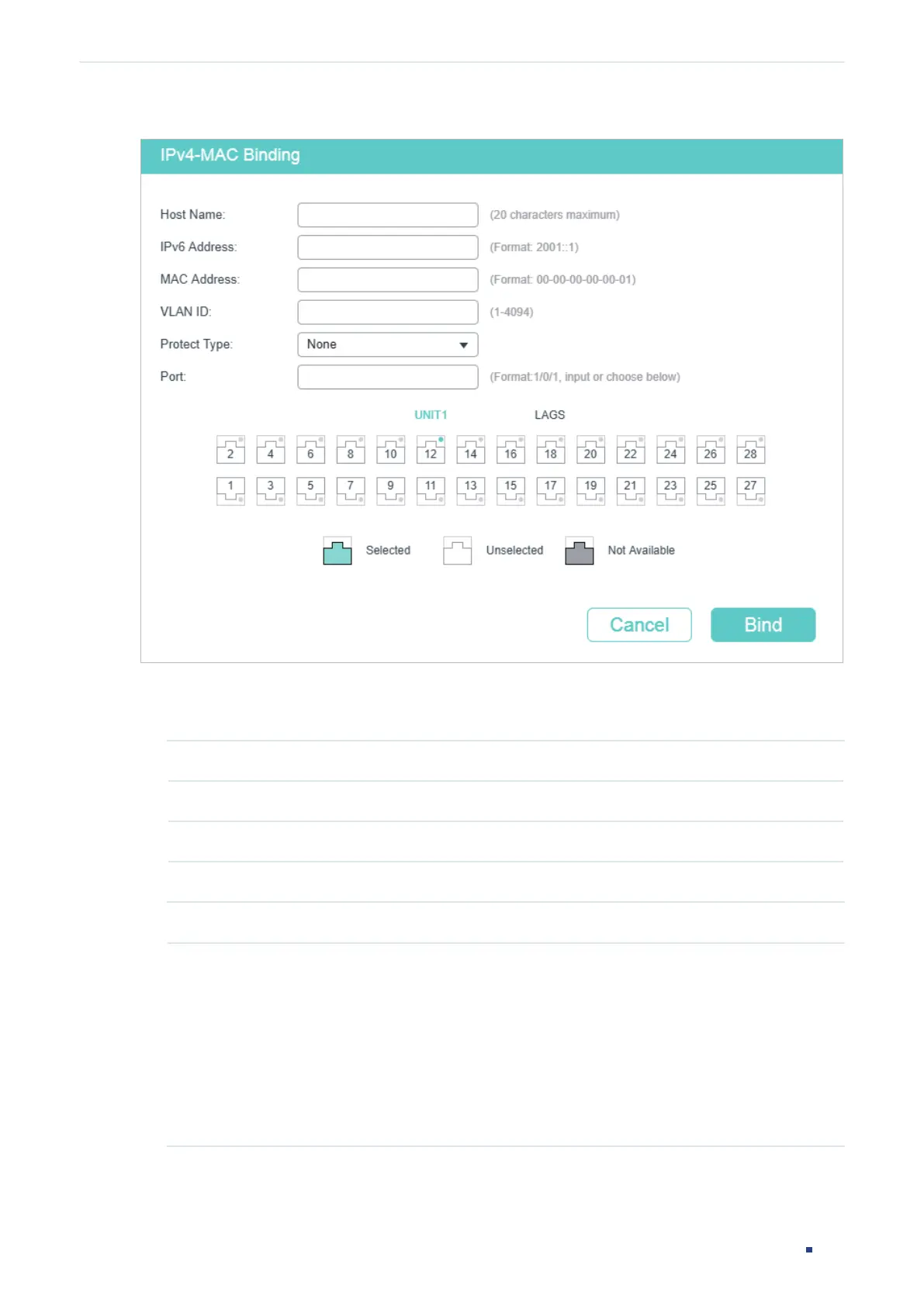 3) Enter or select the port that is connected to this host.