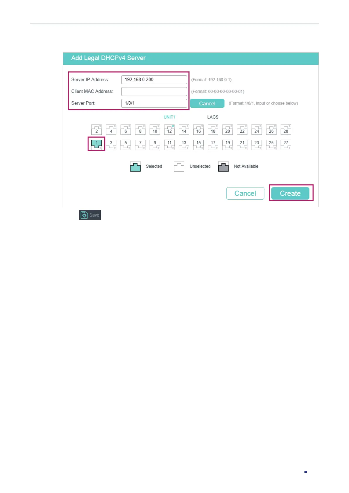 Figure 4-3 Create Entry for Legal DHCPv4 Server