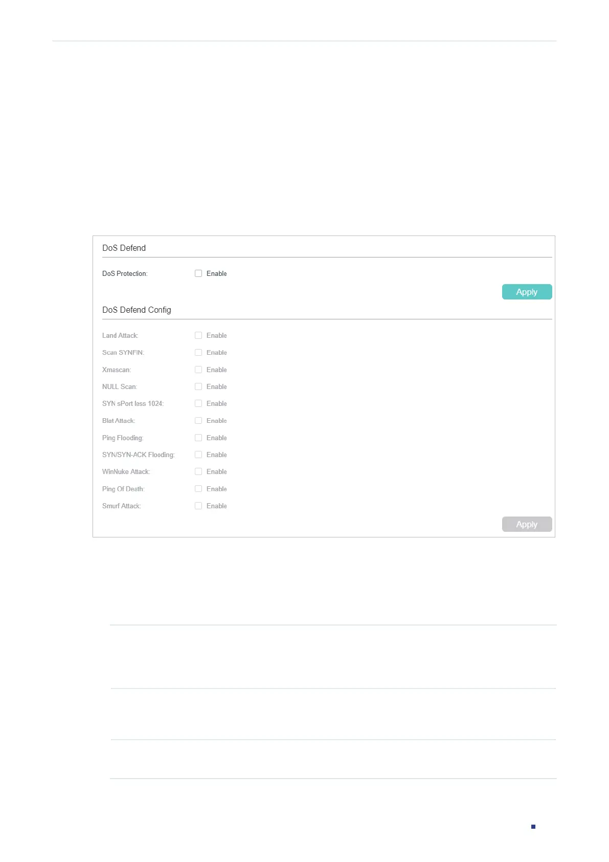 1) In the DoS Defend section, enable DoS Protection and click Apply.