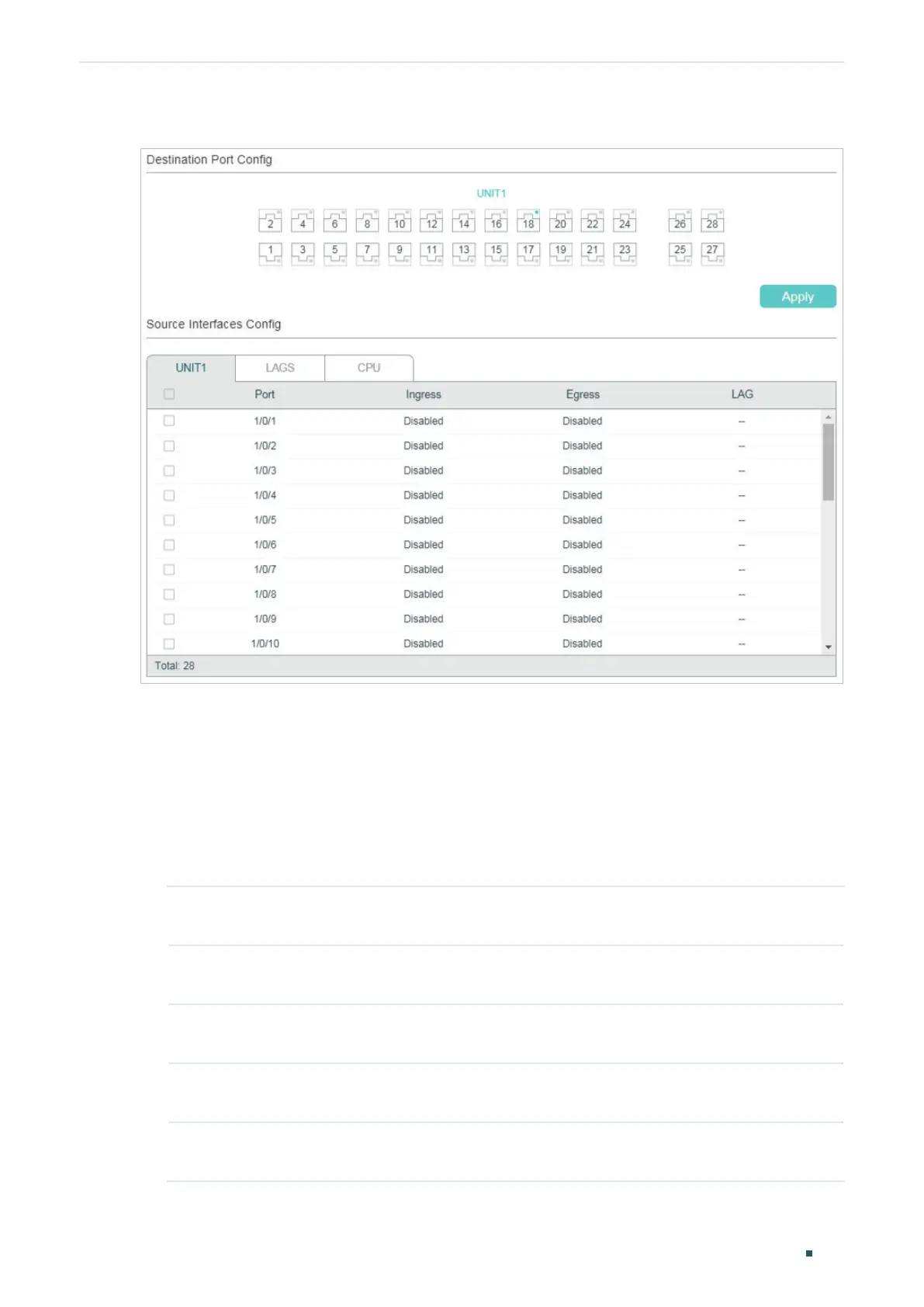 UNIT1 Select the desired ports as the source interfaces. The switch will send a copy of