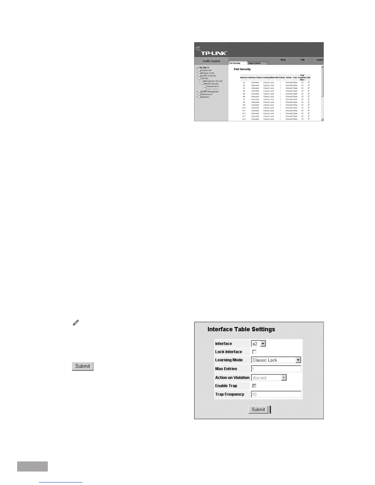 Trap — Enables traps when a packet is received on a locked port. The possible eld values are: