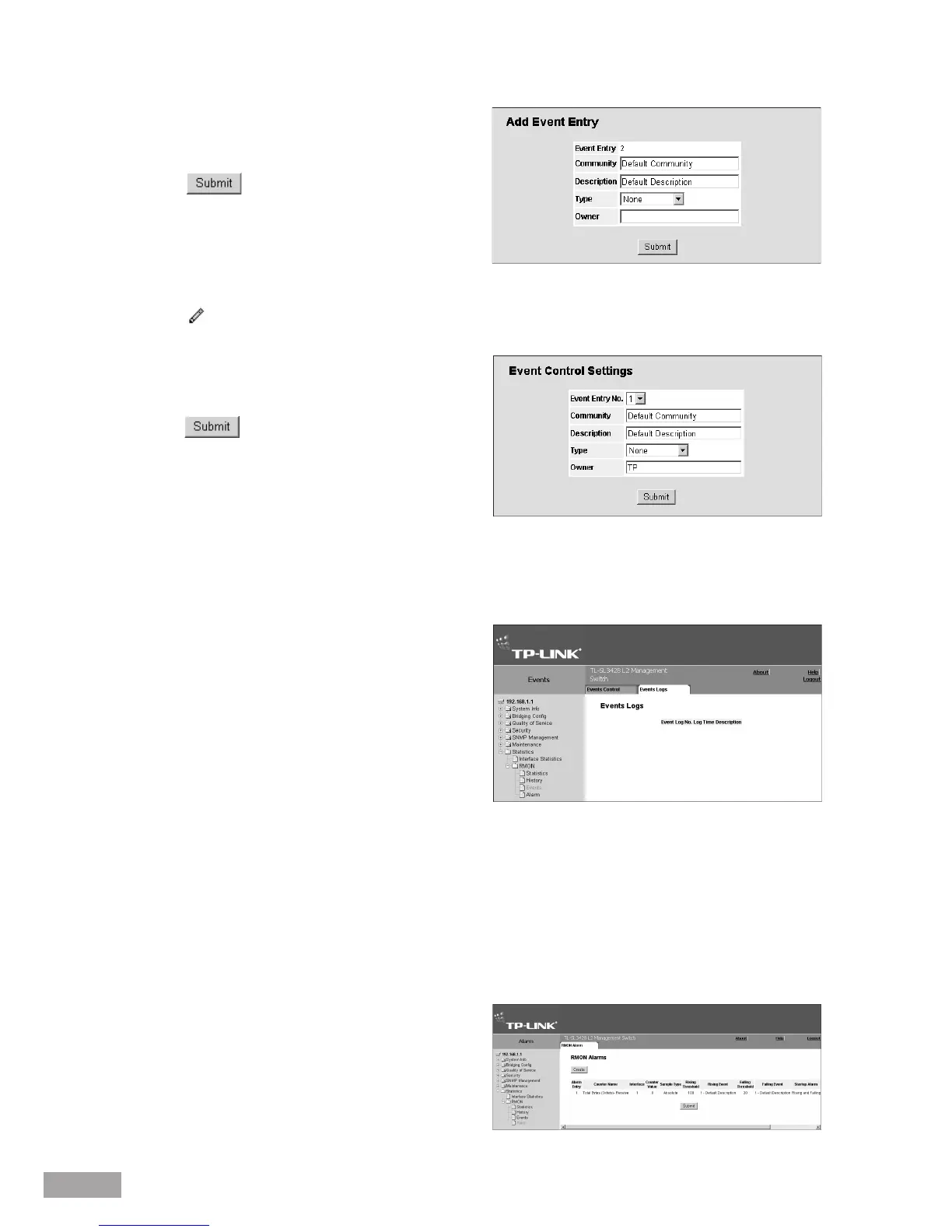 1. Click System > Statistics > RMON > Events. The RMON Events Logs Page opens:
