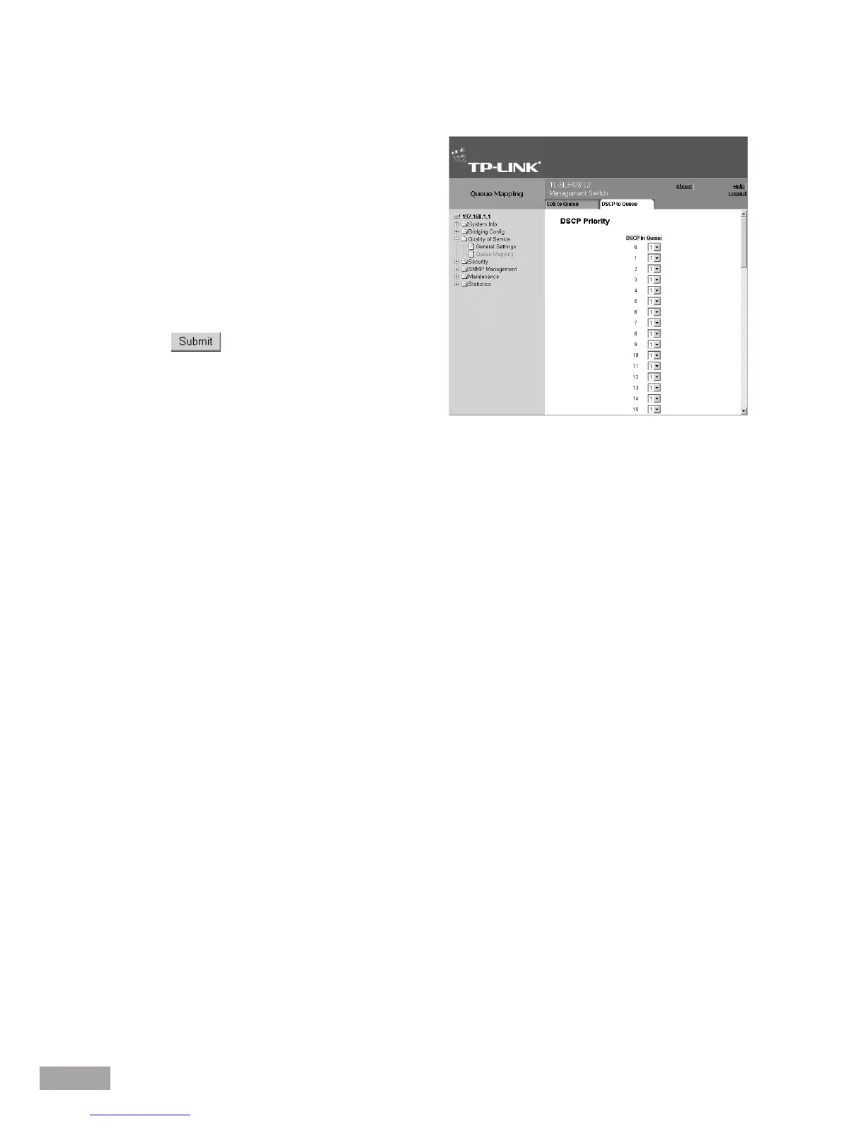 1. Click System > Quality of Service > Queue Mapping > DSCP to Queue. The DSCP to Queue Page opens:
