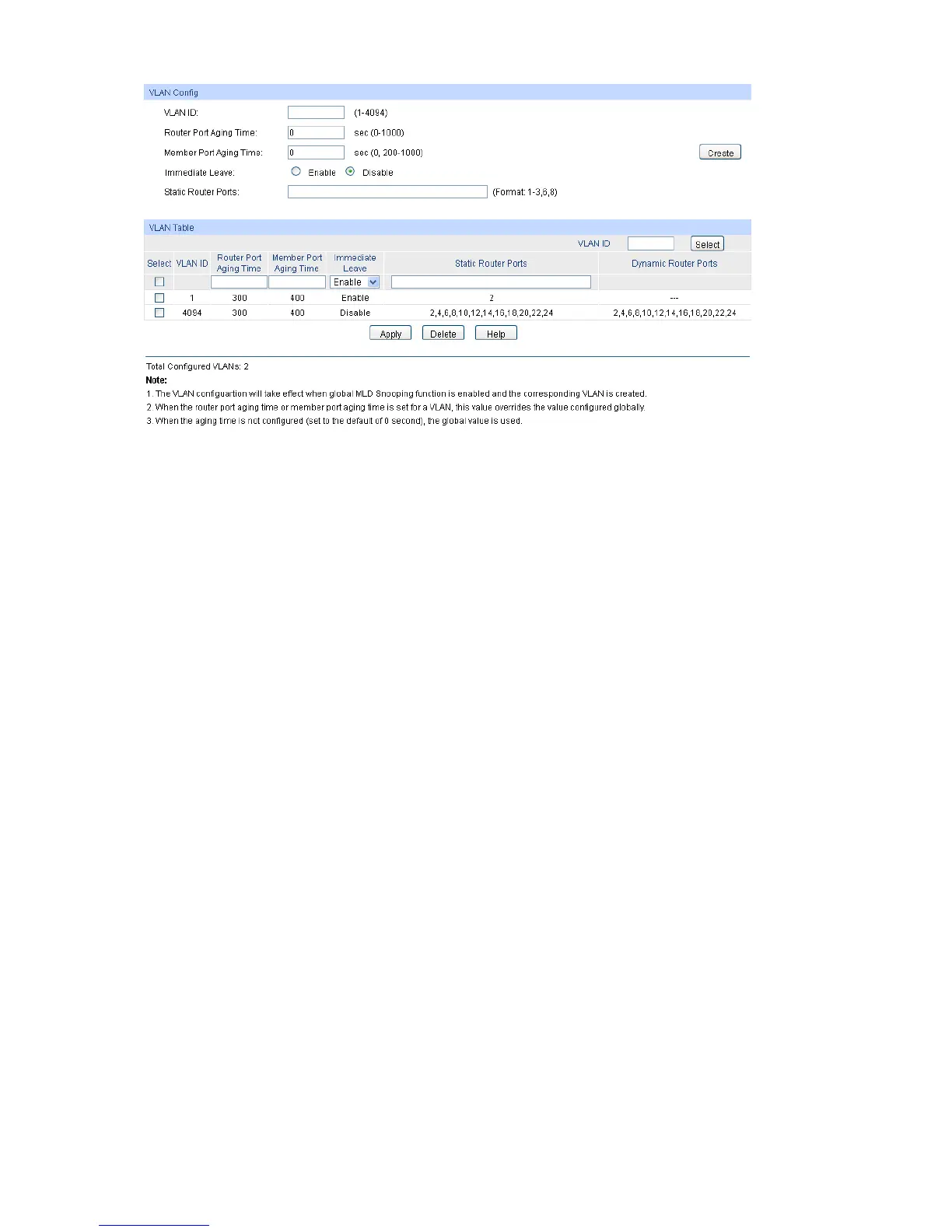 Immediate Leave: Displays the immediate leave function of this VLAN.