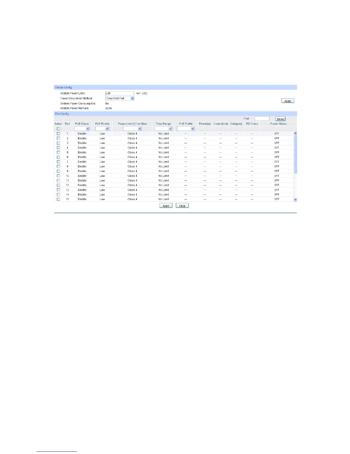 PoE Config, mainly for PoE attributes configuration, is implemented on PoE Config and PoE