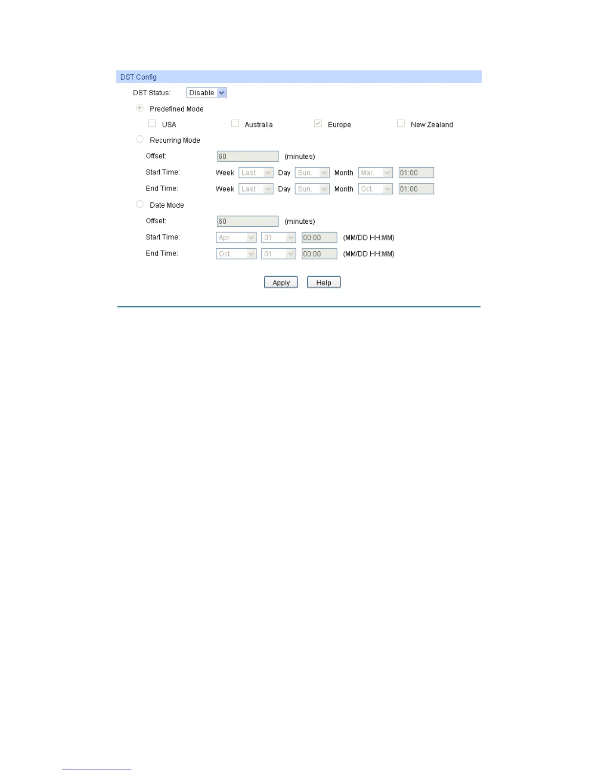 Predefined Mode: Select a predefined DST configuration: