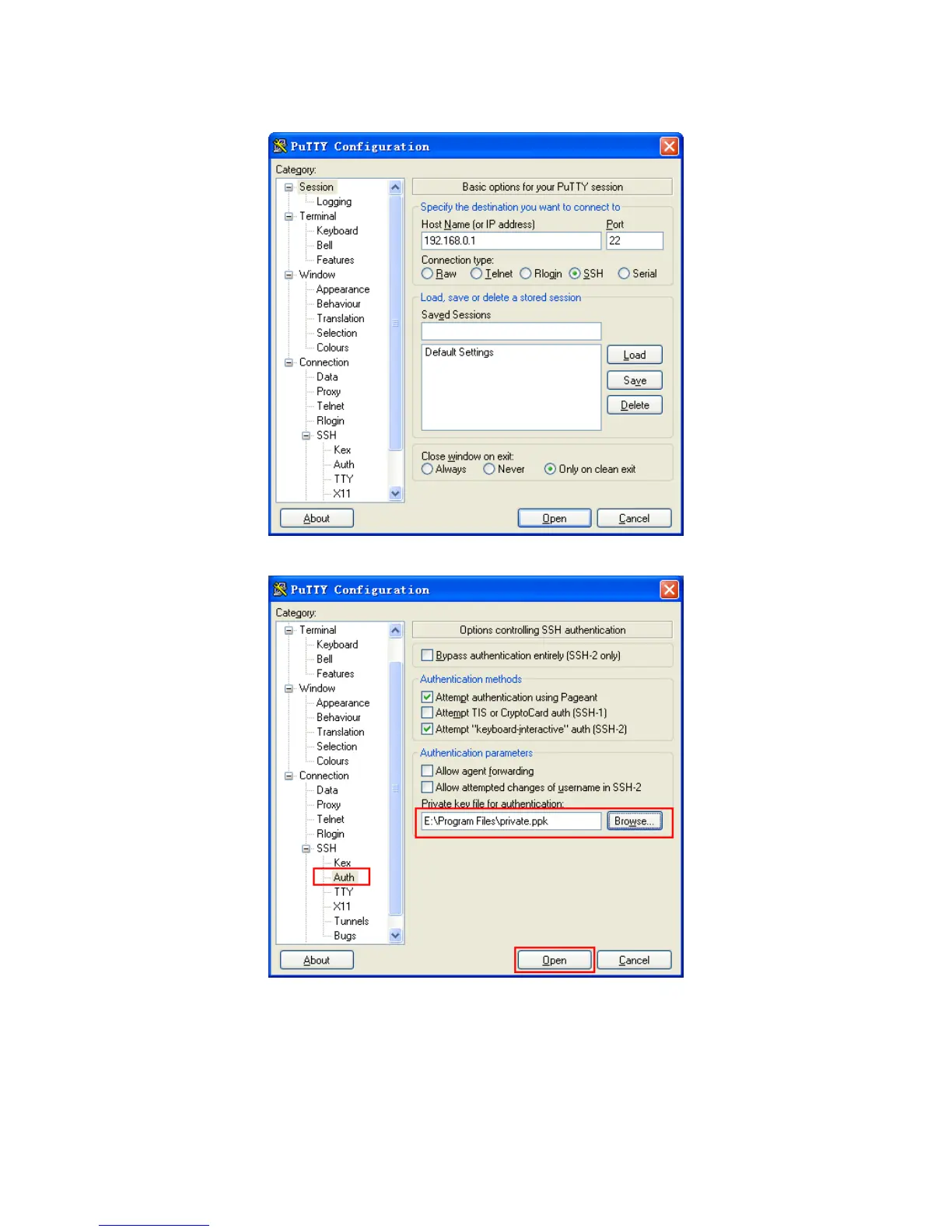 4. After the public key is downloaded, please log on to the interface of PuTTY and enter the IP