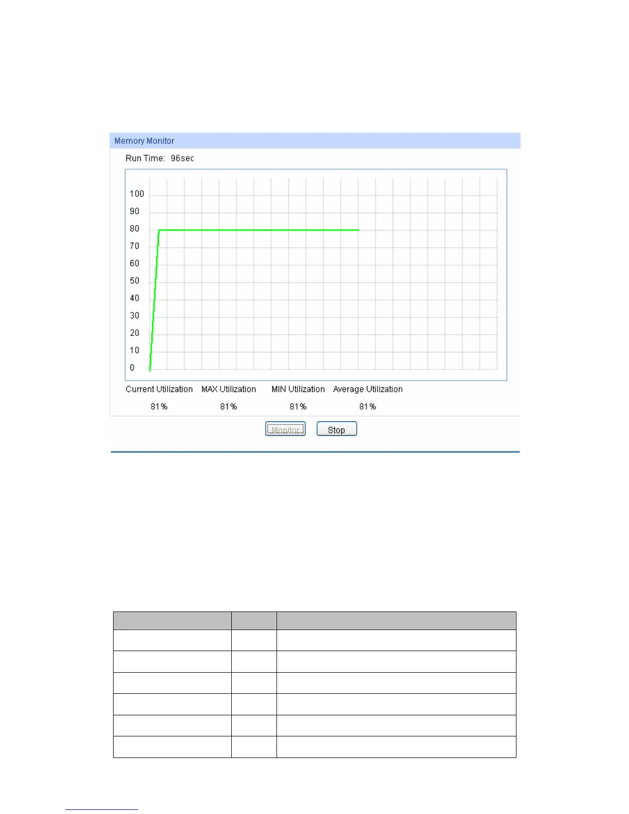 Click the Monitor button to enable the switch to monitor and display its Memory utilization rate