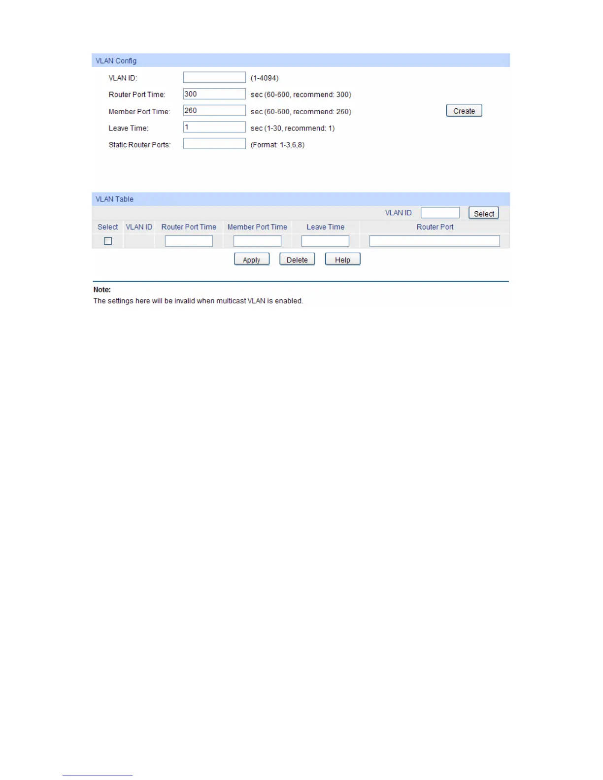 Select: Select the desired VLAN ID for configuration. It is multi-optional.