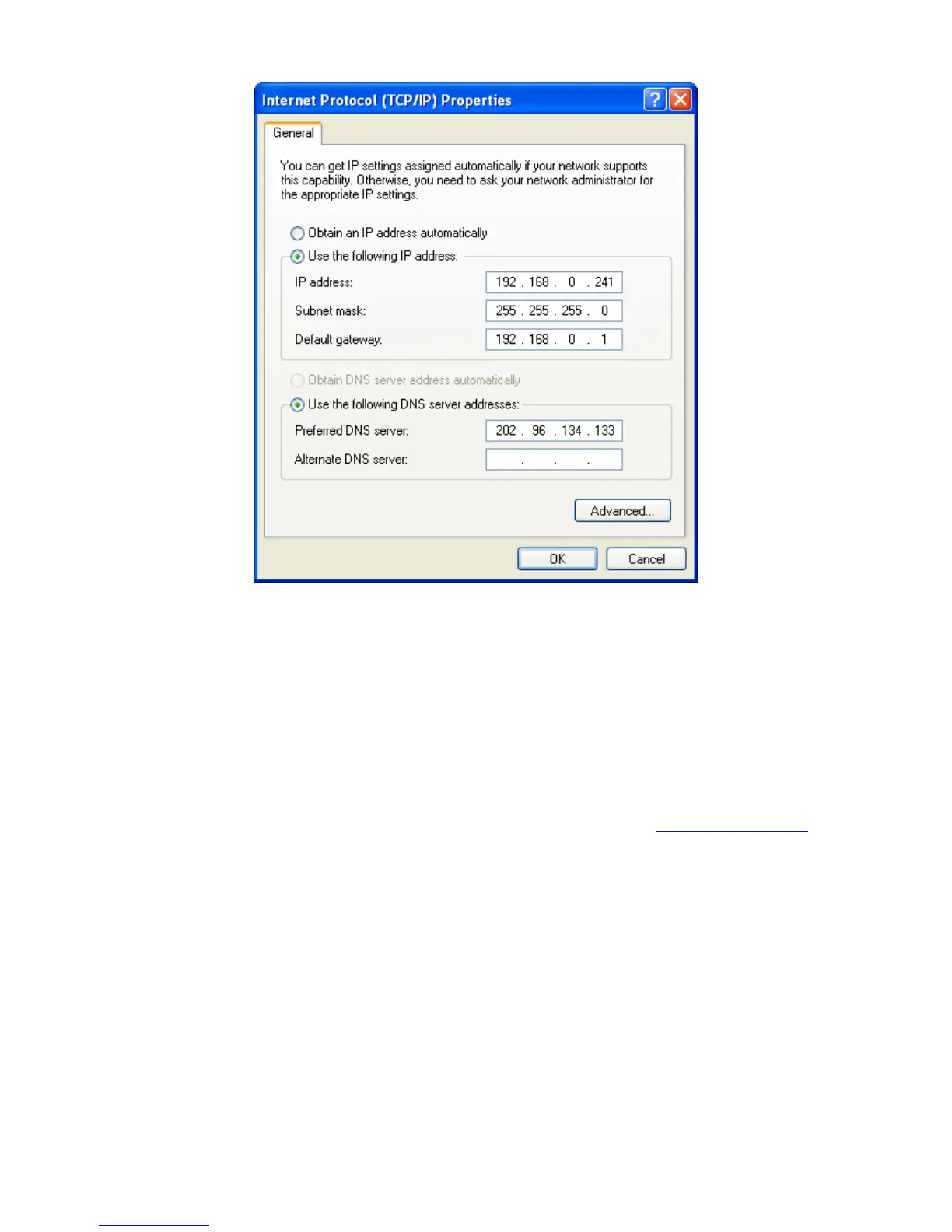IP address is 192.168.0.1, specify IP address as 192.168.0.x (x is from 2 to 254), and the
