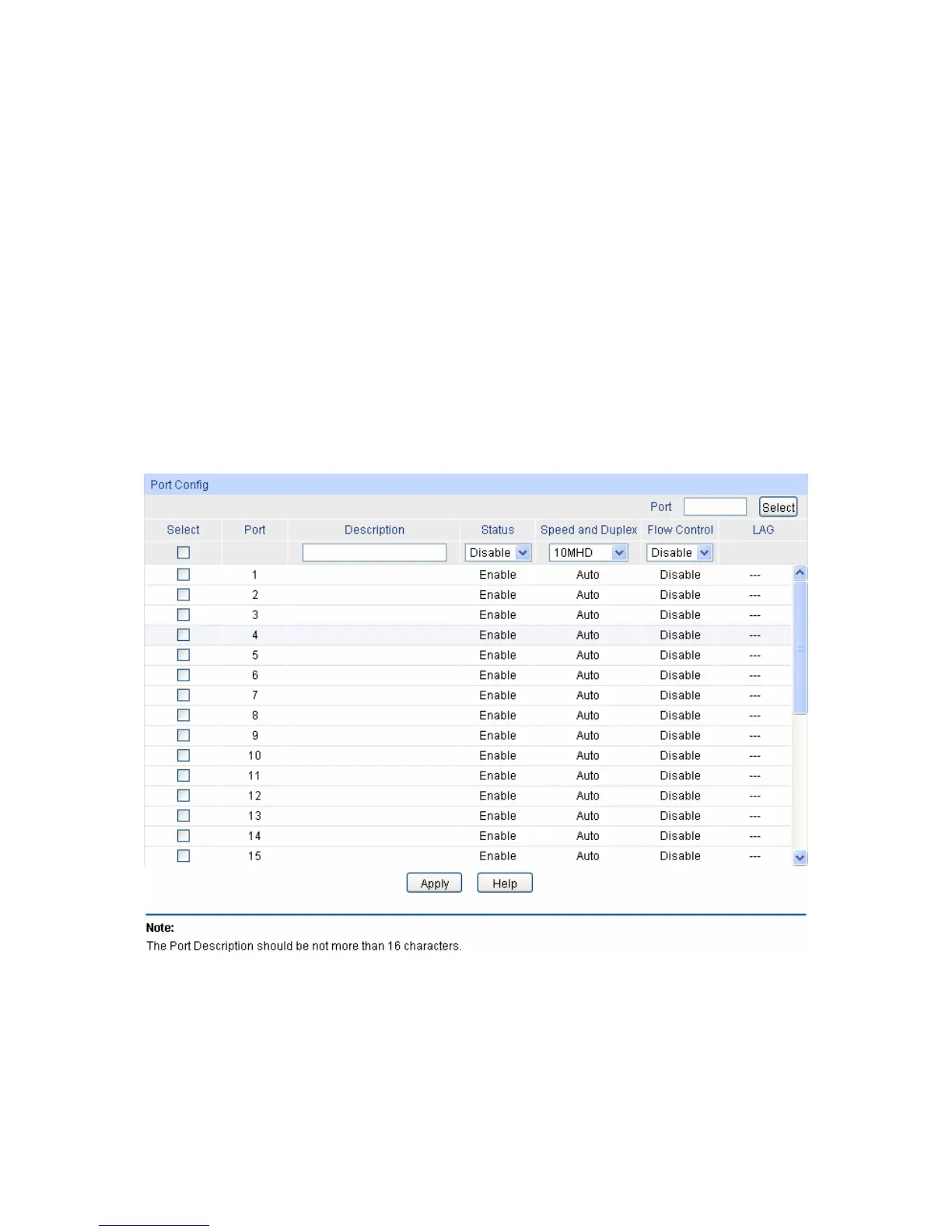 On this page, you can configure the basic parameters for the ports. When the port is disabled, the