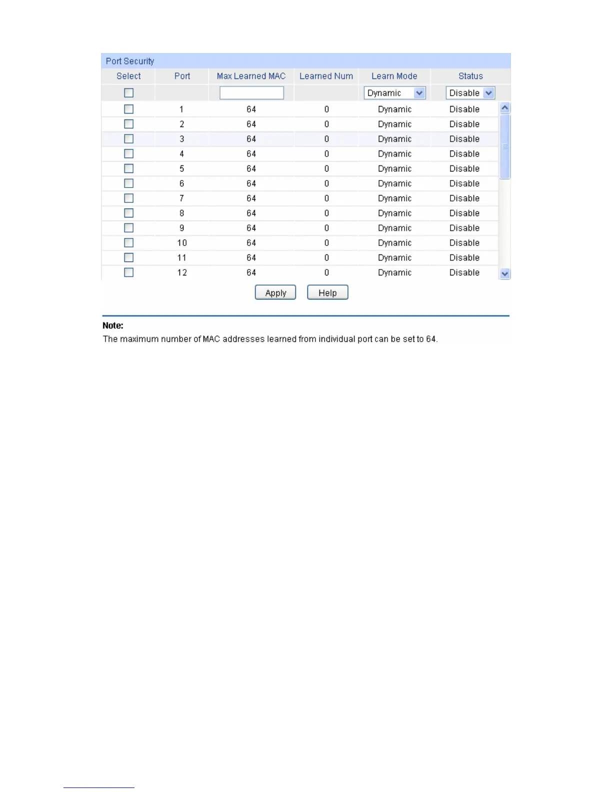 Max Learned MAC: Specify the maximum number of MAC addresses that can be