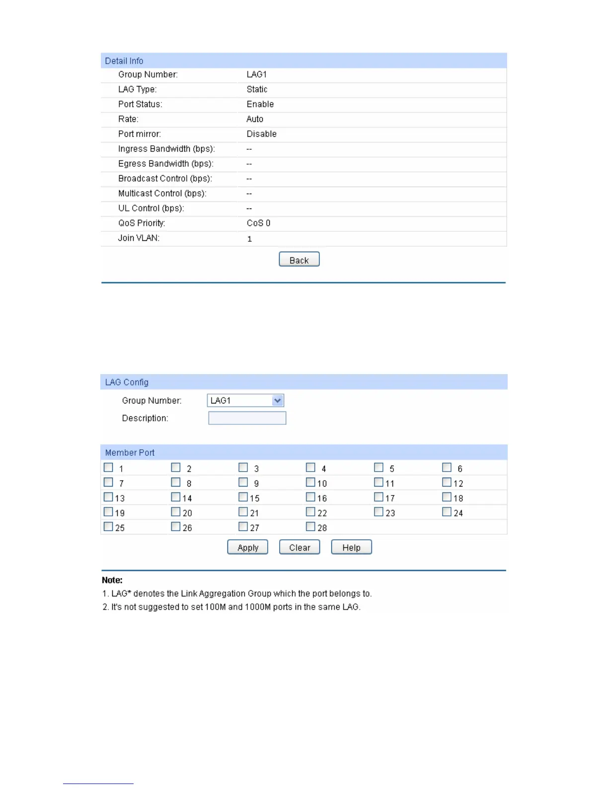Choose the menu Switching→LAG→Static LAG to load the following page.