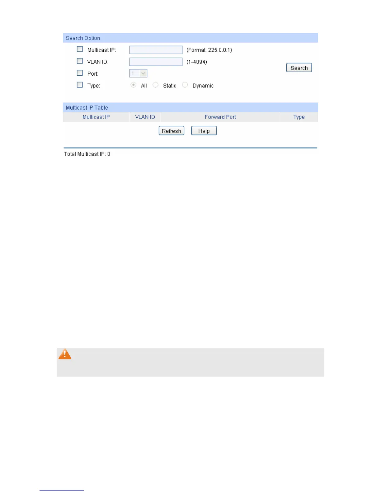 Multicast IP: Enter the multicast IP address the desired entry must carry.