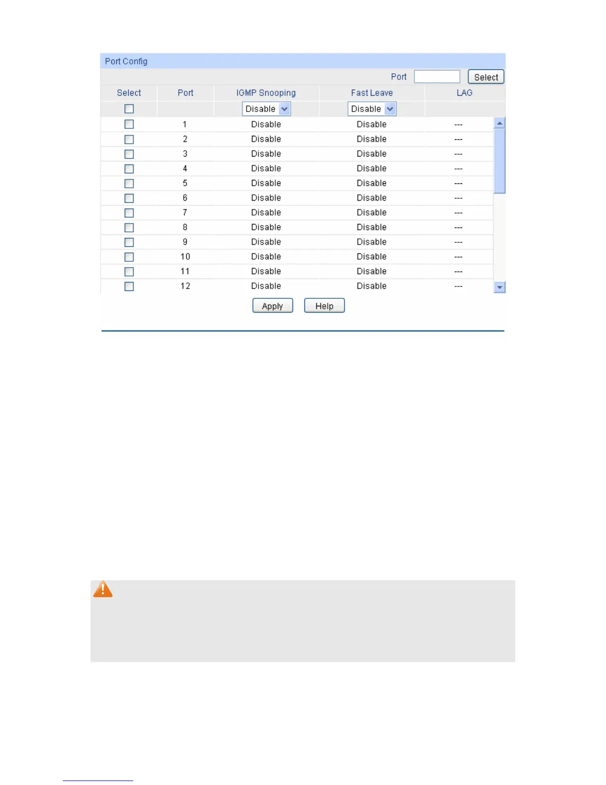 Select: Select the desired port for IGMP Snooping feature configuration. It