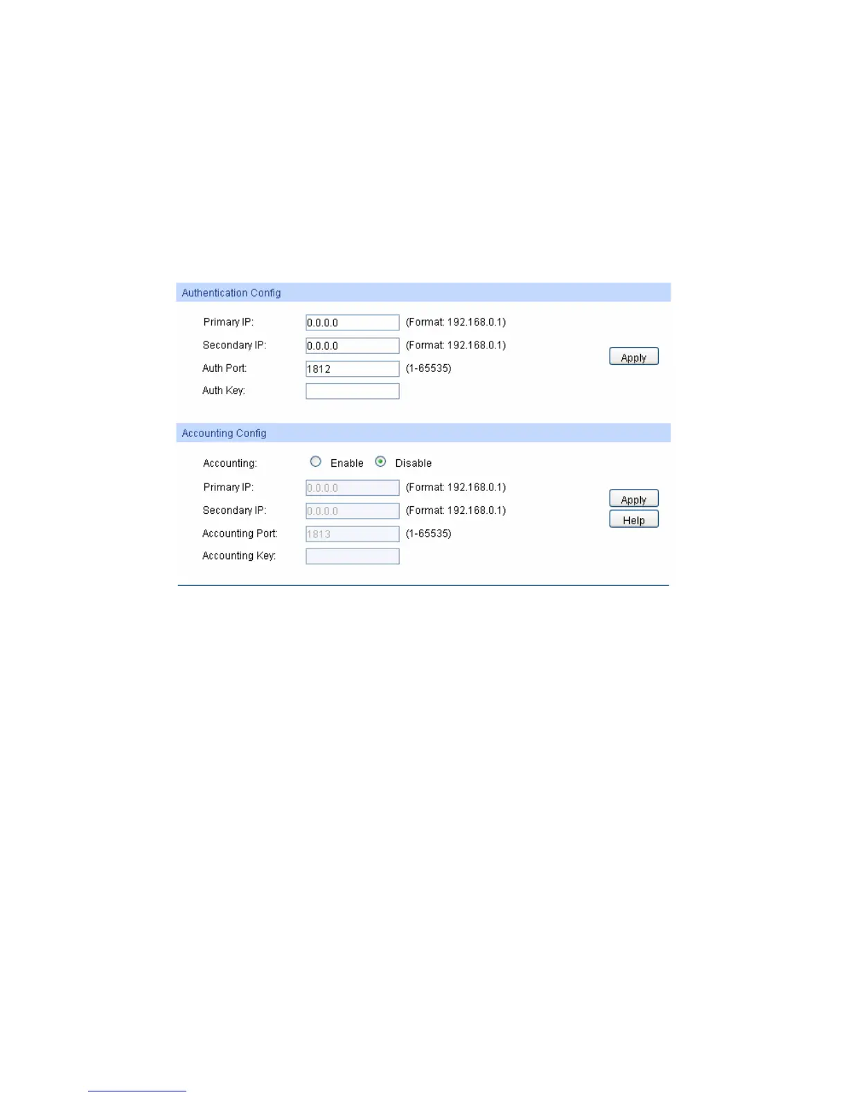 Accounting Port: Set the UDP port of accounting server(s). The default port is 1813.