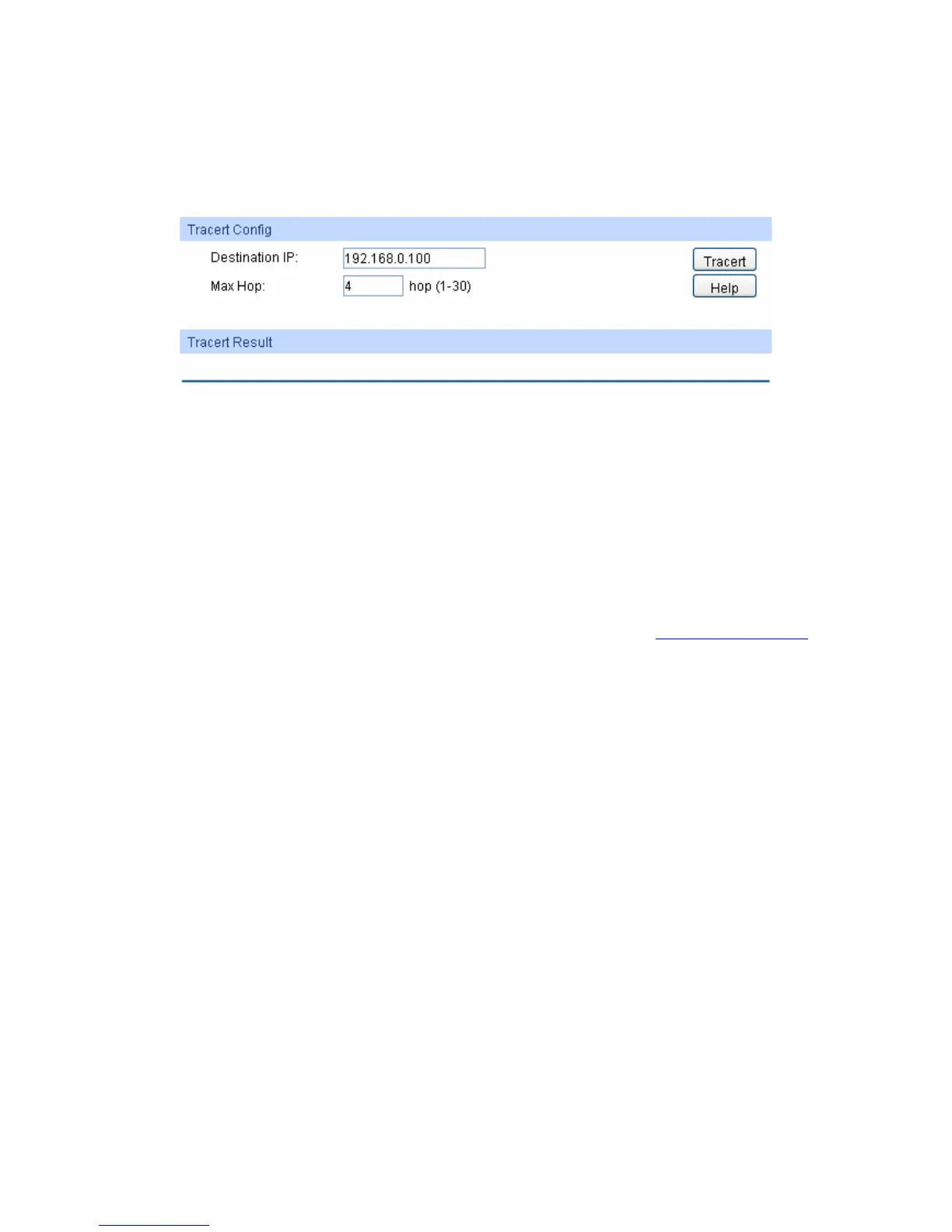 Choose the menu Maintenance→Network Diagnose→Tracert to load the following page.