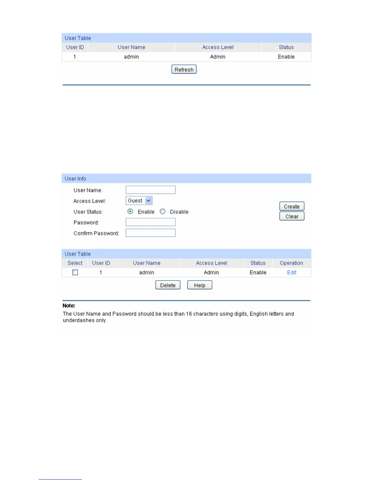 Figure 4-7 User Table