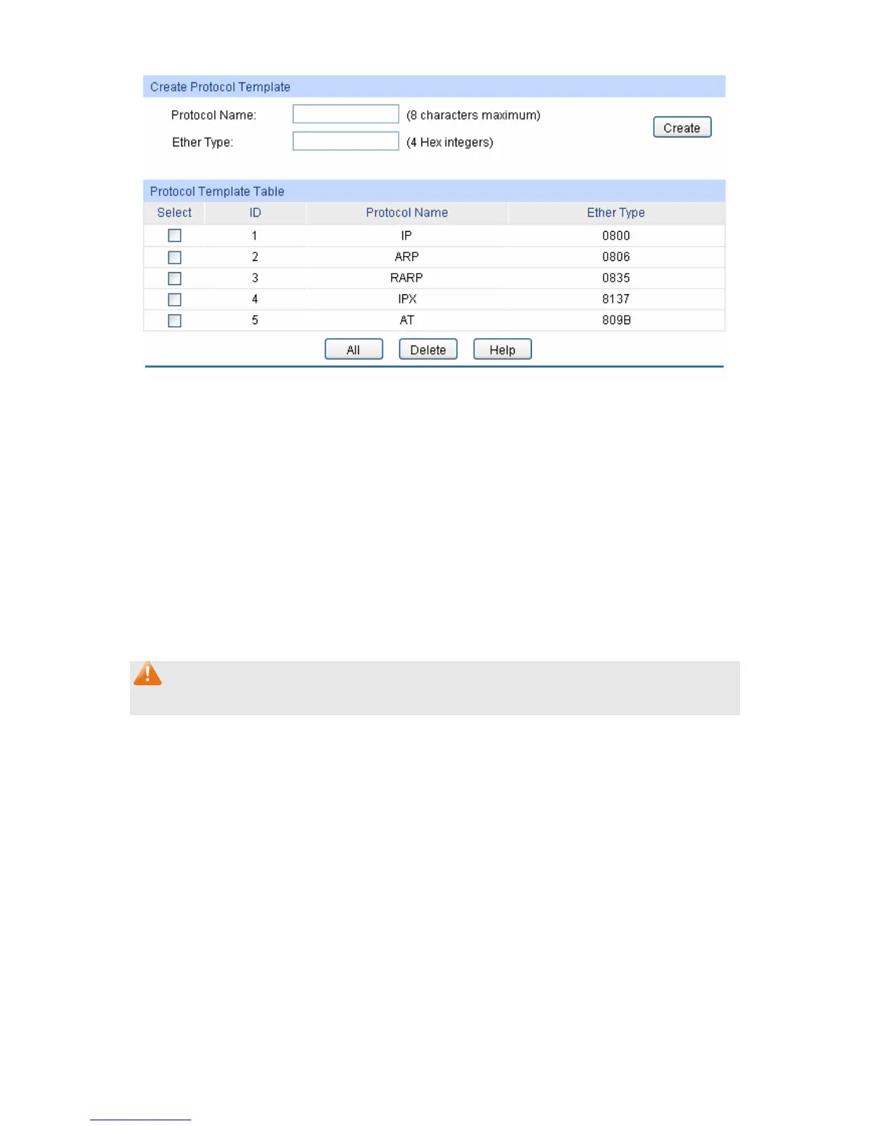 Ether Type: Enter the Ethernet protocol type field in the protocol template.